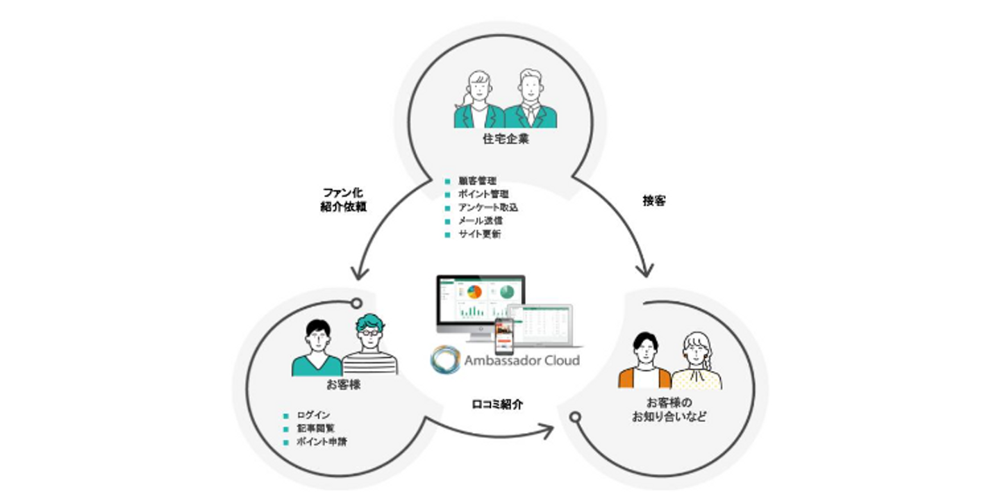 Ambassador Cloudは現在、住宅業界の企業に向けて提供しています。