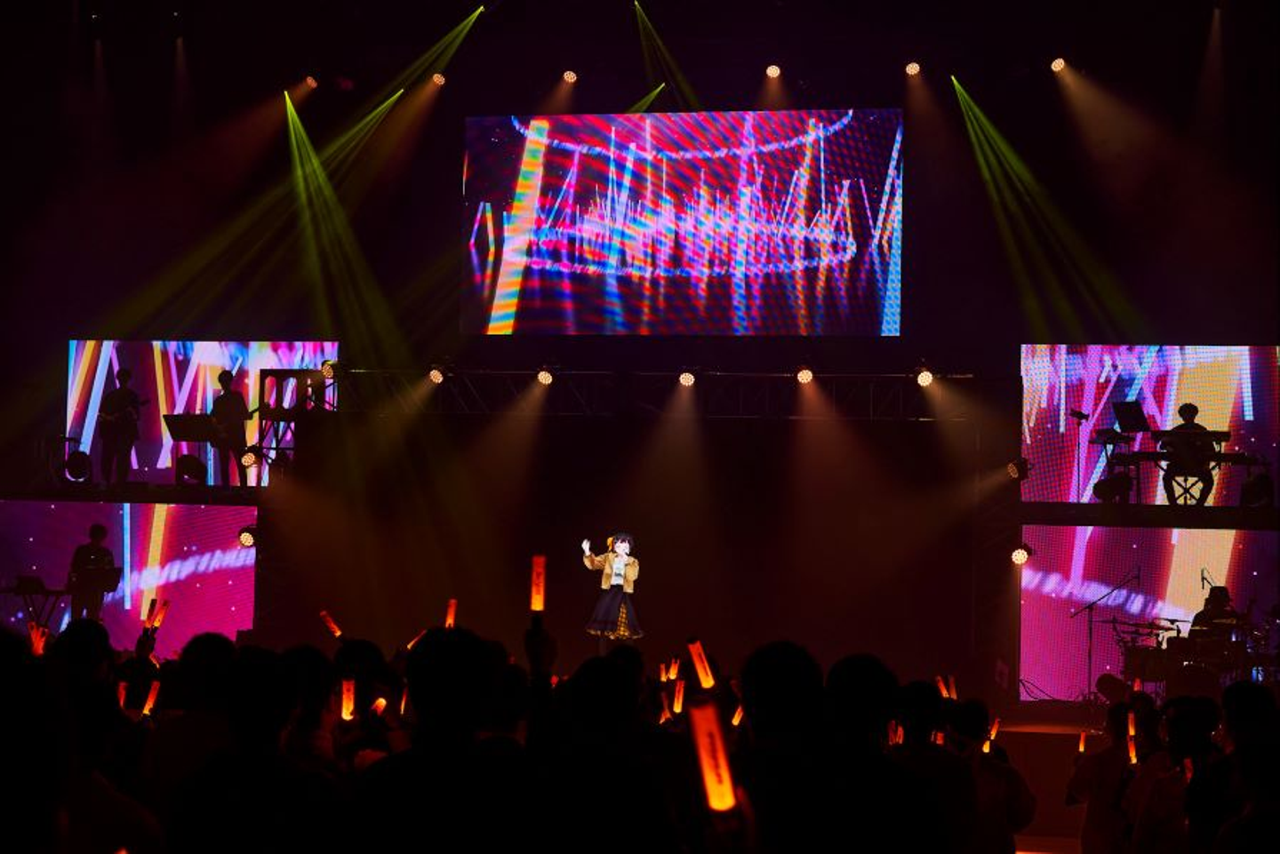 オンオフという意味では、MCでのトークとパフォーマンス中とのギャップも凄まじく、この切り替えも凪原涼菜の魅力の1つなんだろうと実感させられた。「今年はついに皆さんの声を聞くことができて嬉しいです!」と、声ありライブを目の当たりにし、ダイレクトに返ってくる声援に感動する姿が印象的だった。ソロステージ最後に披露したのは、昨年のRe:Voltでも歌い上げた『Okeanos』。綺麗なピアノの旋律に、凪原涼菜のキャッチーなメロディと歌声が鳴り響くと、水色のペンライトが大きく上下左右に振られていく。最後までオーディエンスとの一体感あるライブを堪能することができた。