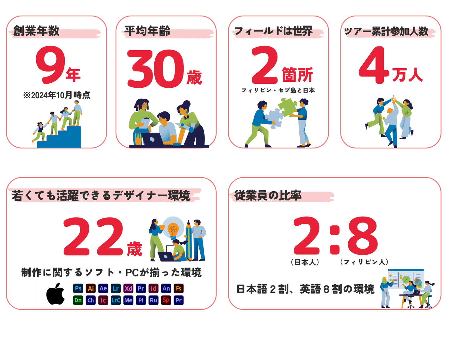 国籍、年代、経験も異なる多様なメンバーと共に最高のチームワークで仕事をする楽しさがあります。