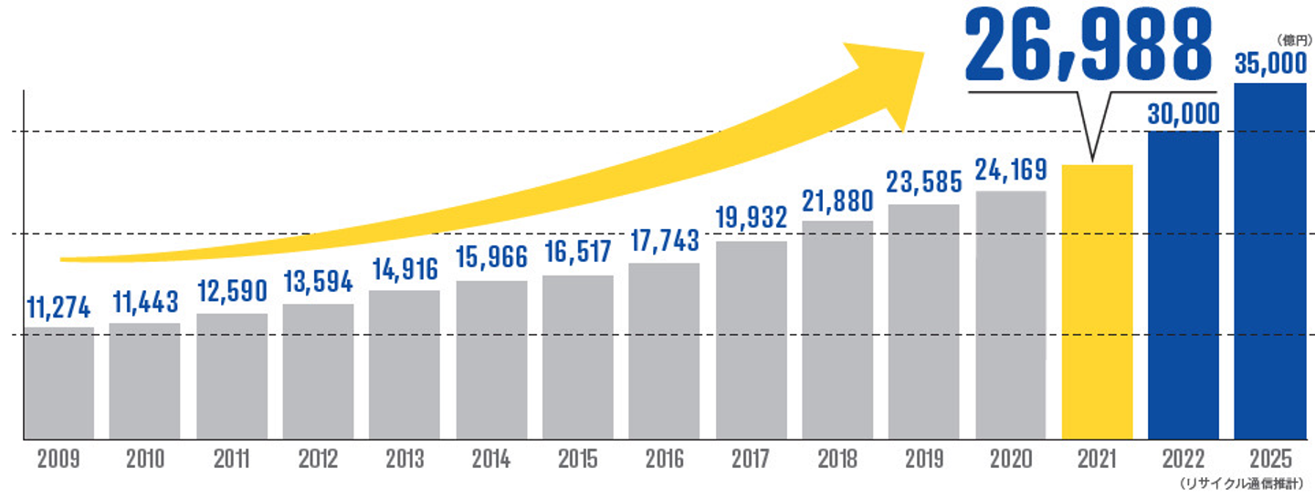 続いて、現在のリユースの市場規模をお伝えしていきます。