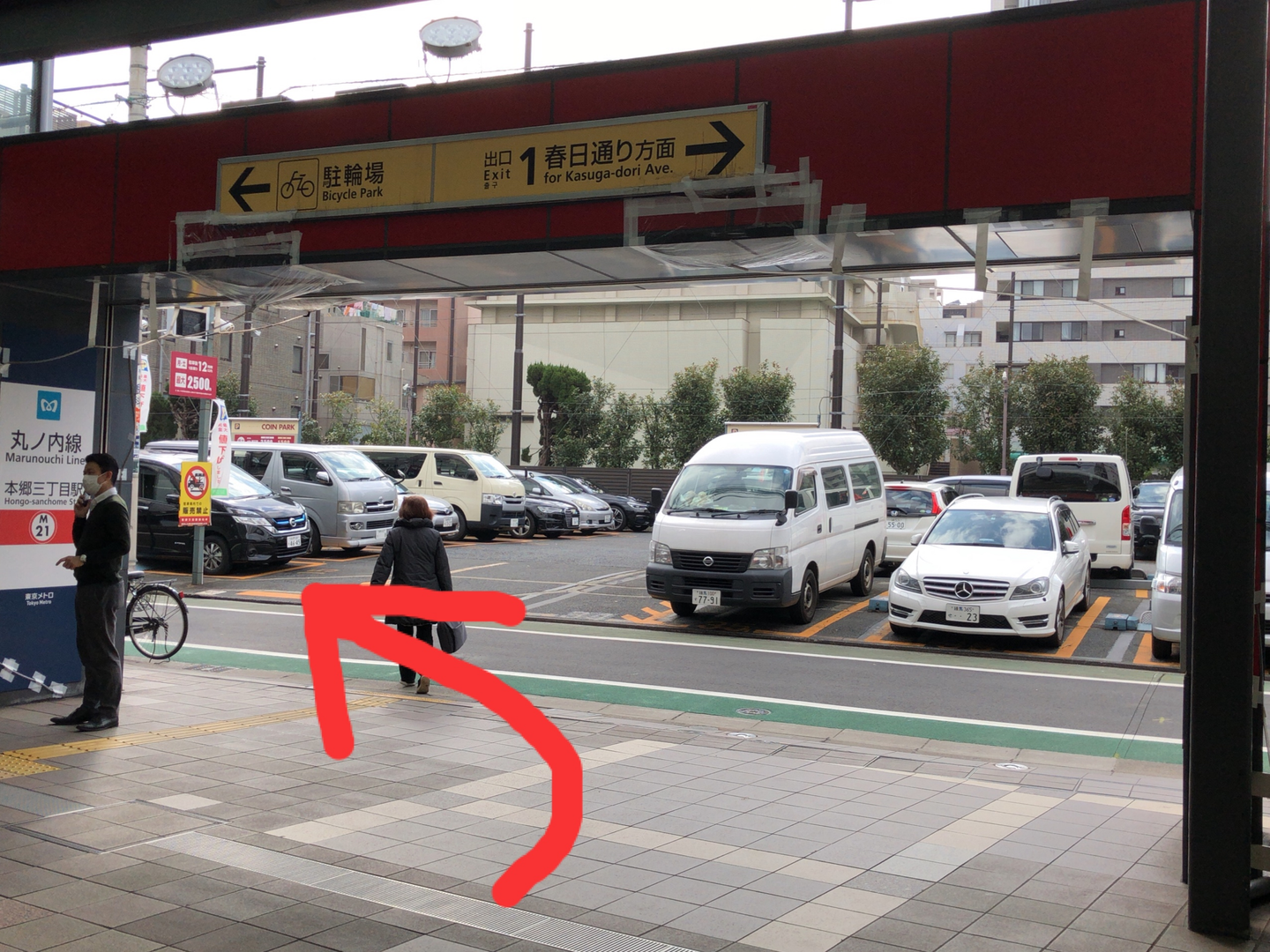 改札を出たら「出口1」から道に出てください。そして左に進んで行きます。