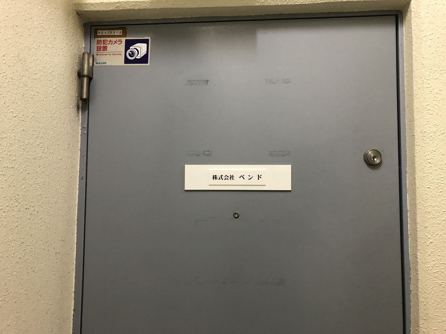 ここがベンドのオフィスが入っているビルです。2階に上がってもらうと、ベンドの表札がついたドアがあります。