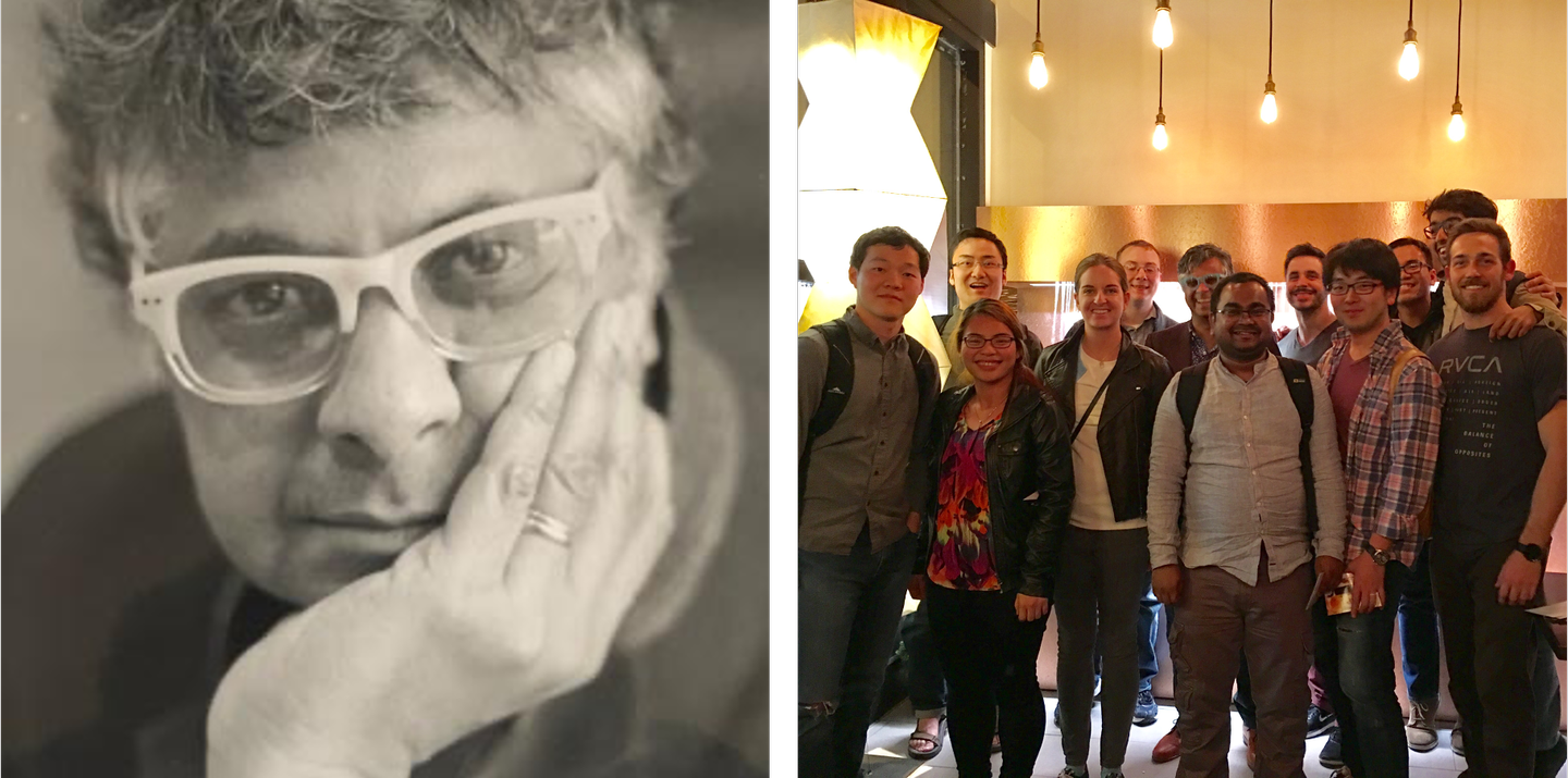 左: 金出武雄先生(カーネギーメロン大学名誉教授)を囲んでの一枚