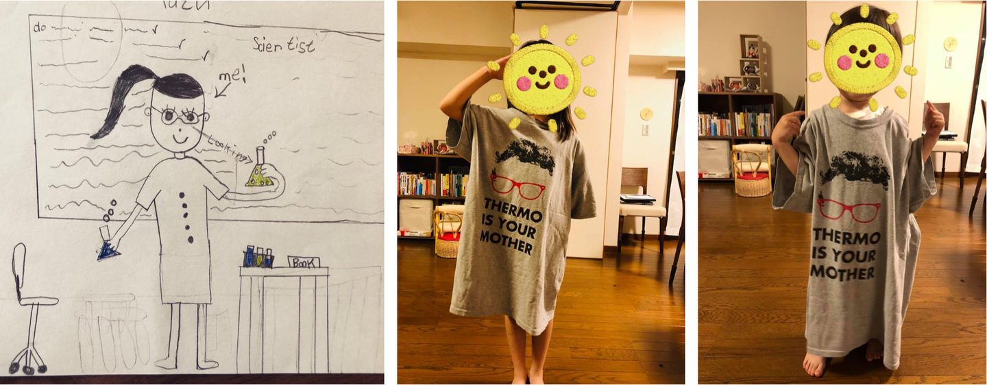 中央: Kumar Lab Tシャツを着て敬礼している娘