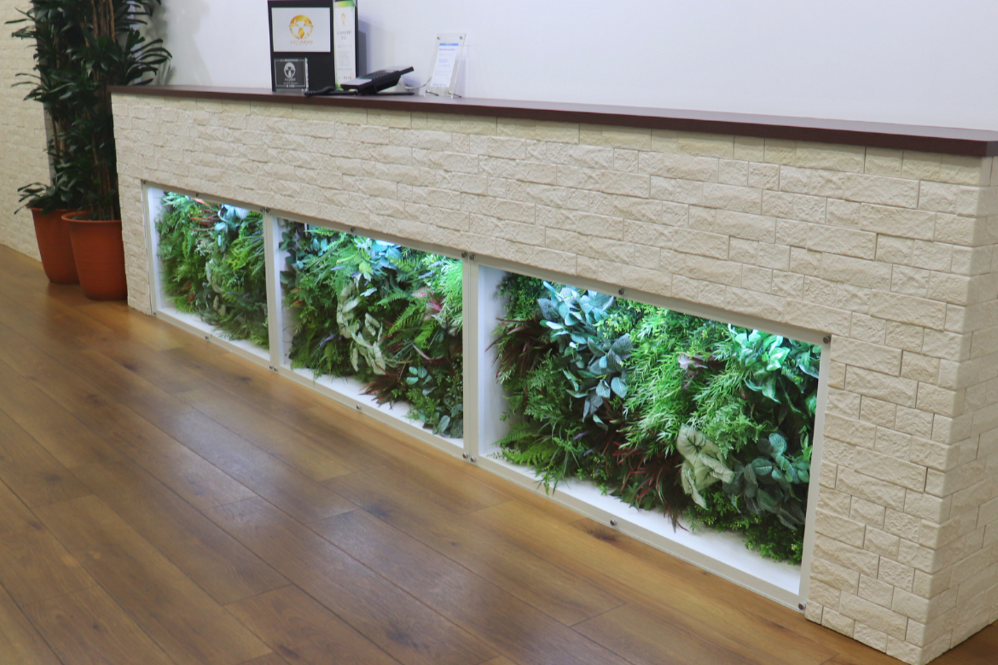 エレベーターで4階に到着して左手に向かうと、緑を意識した明るいエントランスで皆さんをお迎えします!