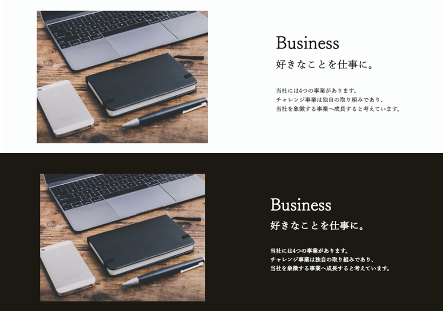 やはり、モノクロで統一しているホームページは多いです。読み手も見やすいと思いますし、なによりカッコいいです。中でも、背景を黒、テキストを白にすると途端に「オシャレ」になります。