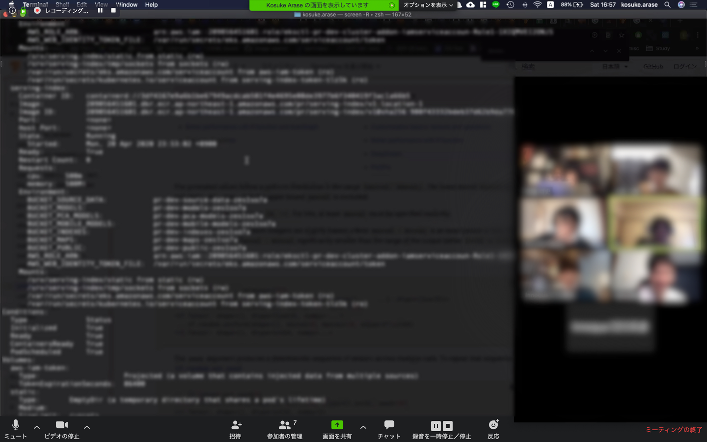 今回はオンラインにて開かれ、機械学習リードエンジニア荒瀬さんの説明を中心に、コードを画面共有しながら進められました。