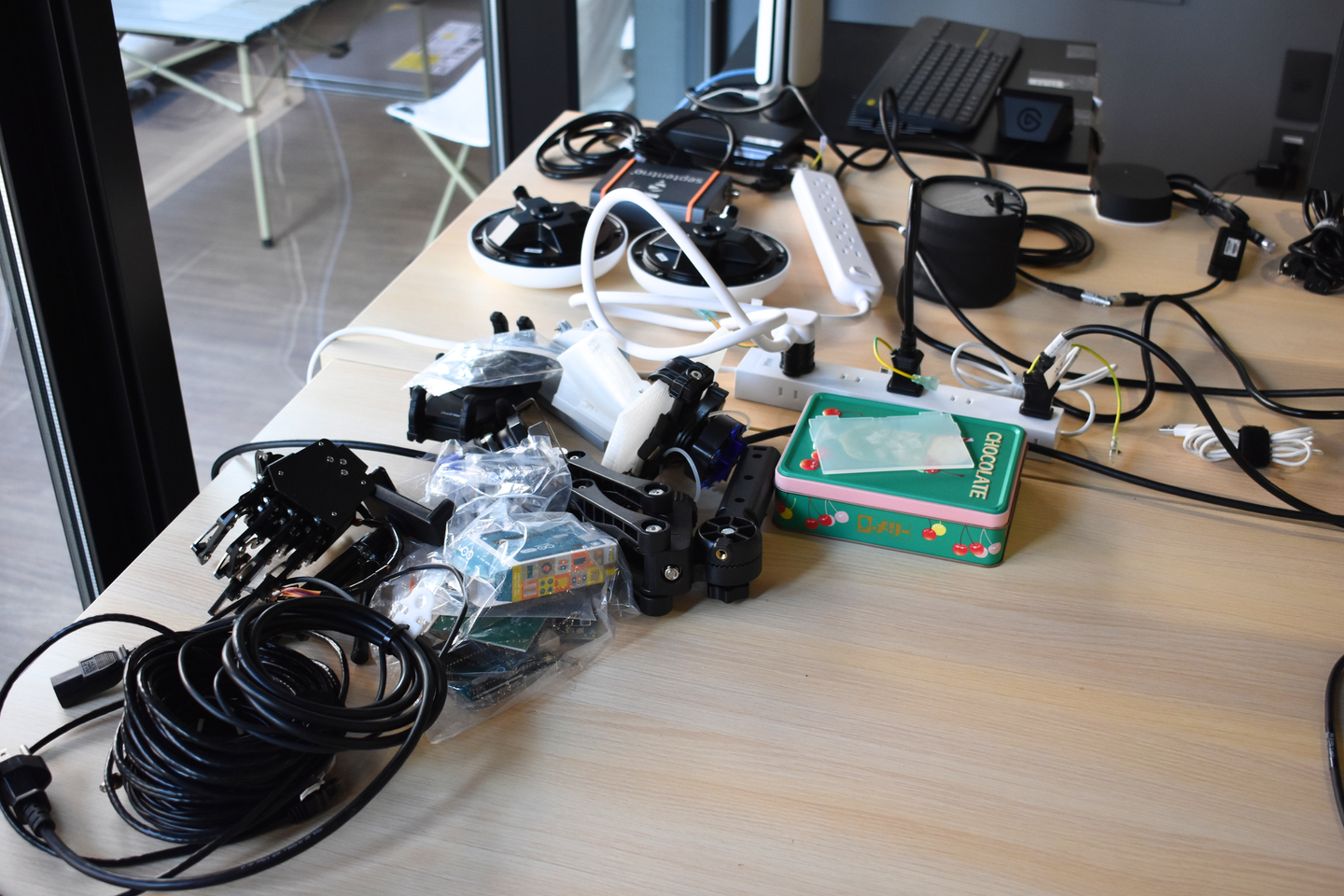 ハードウェアも取り扱うシナスタジアらしく、ARヘッドセットや様々な機材が並んでいます。