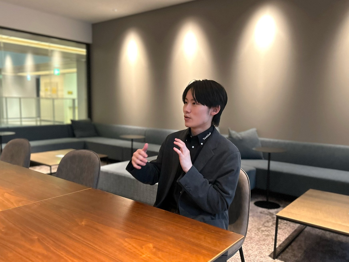 中原:中原瞭太朗(ナカハラ リョウタロウ)です。今年24歳で、カスタマーサクセスの責任者をしています。カスタマーサクセスというのは、弊社が提供している生成AIツール「Taskhub」を導入していただいた企業様に対して、まさにお客様が成功できるように支援する仕事です。