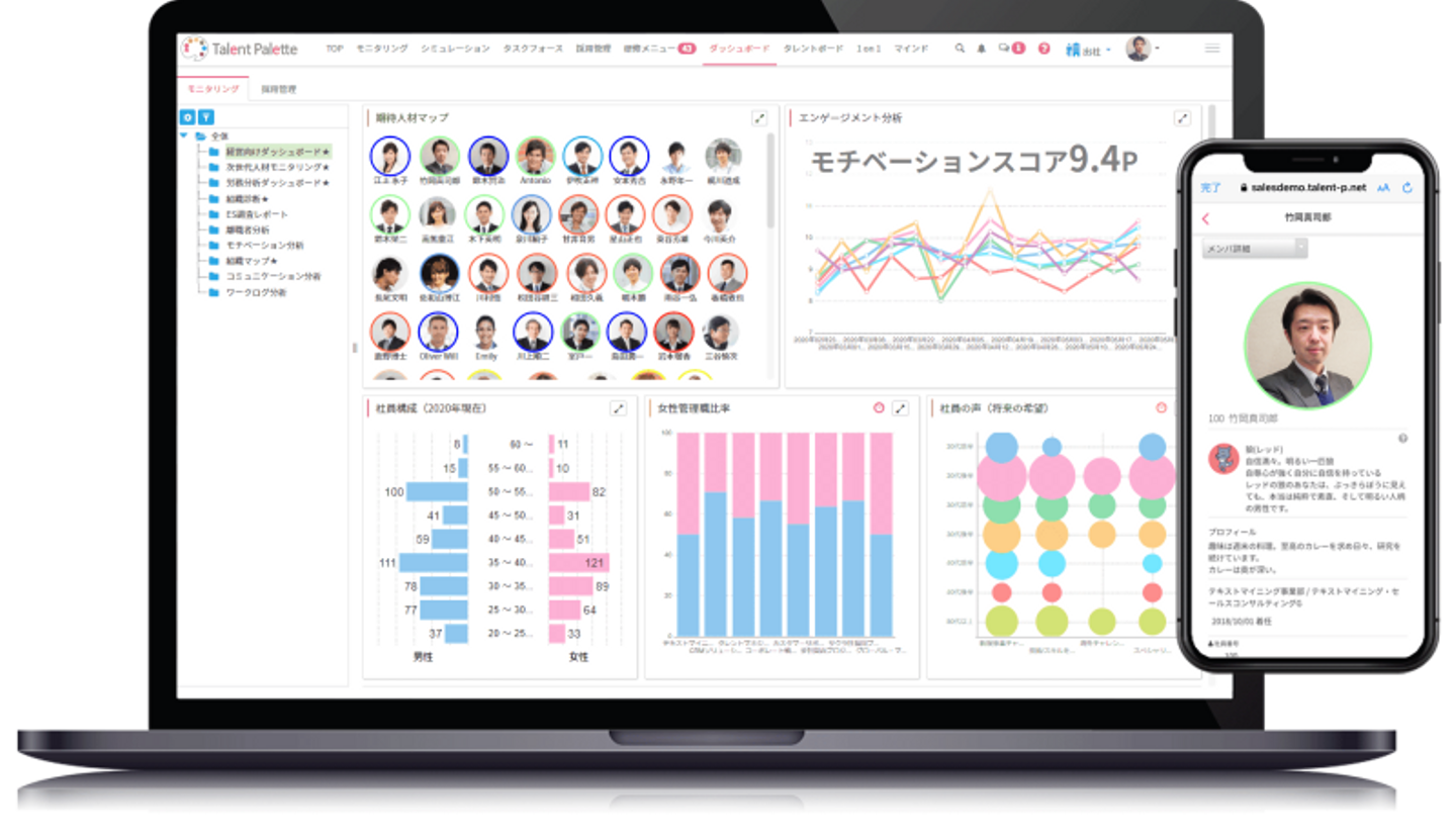 自社の課題から開発したタレントパレット。社員の勤怠状況、評価、スキルなどを見える化する。