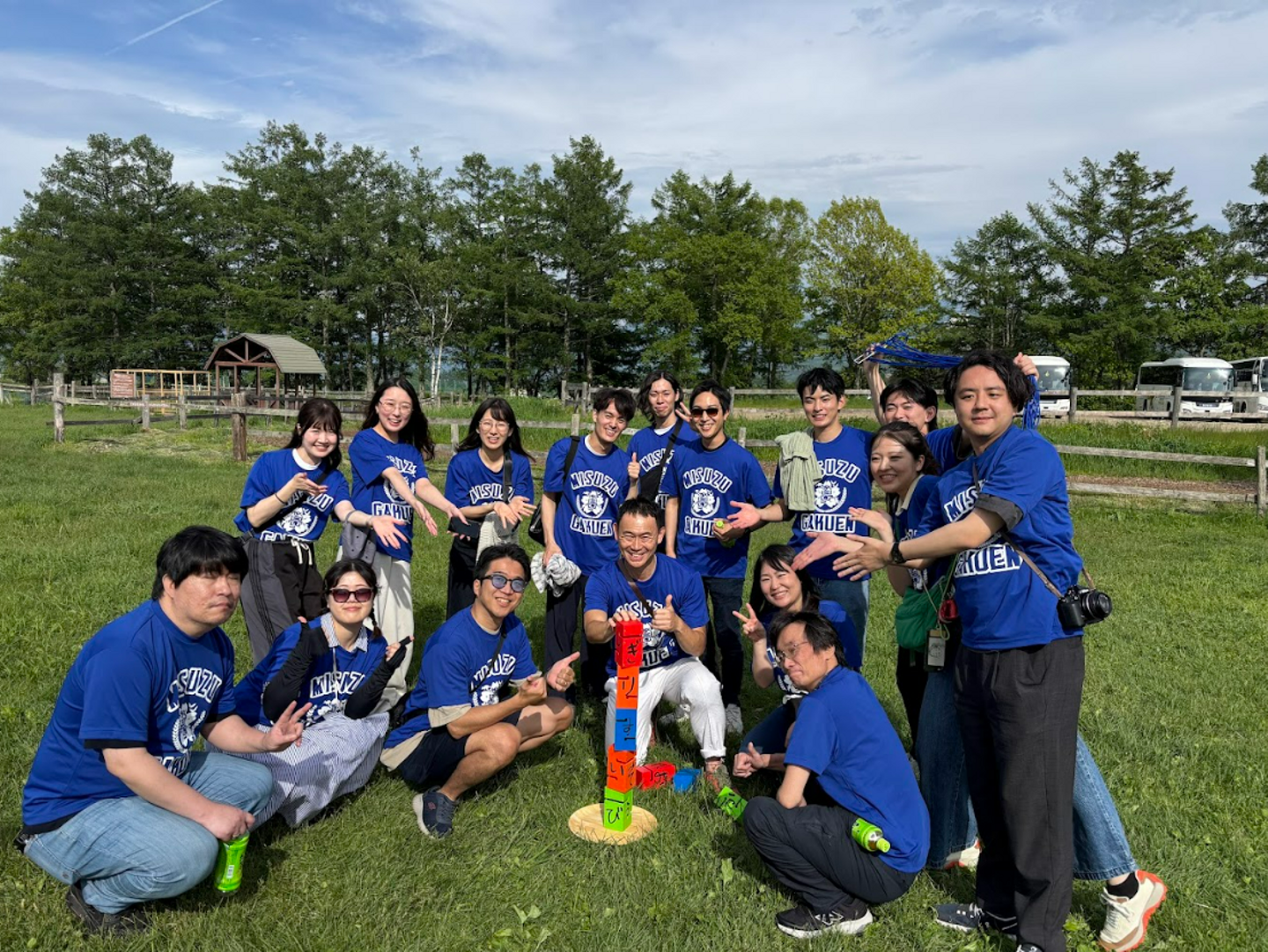 PACメンバーは「私立 三鈴学園」の生徒となり、入学~青春~卒業までを疑似体験するという旅行。社長の三室の「三」と、副社長の鈴村の「鈴」を合わせた学校名、そしてPACが大切にしている動物たちが入った校章に笑いと歓声があがりました。(校章もオリジナルで作成!)