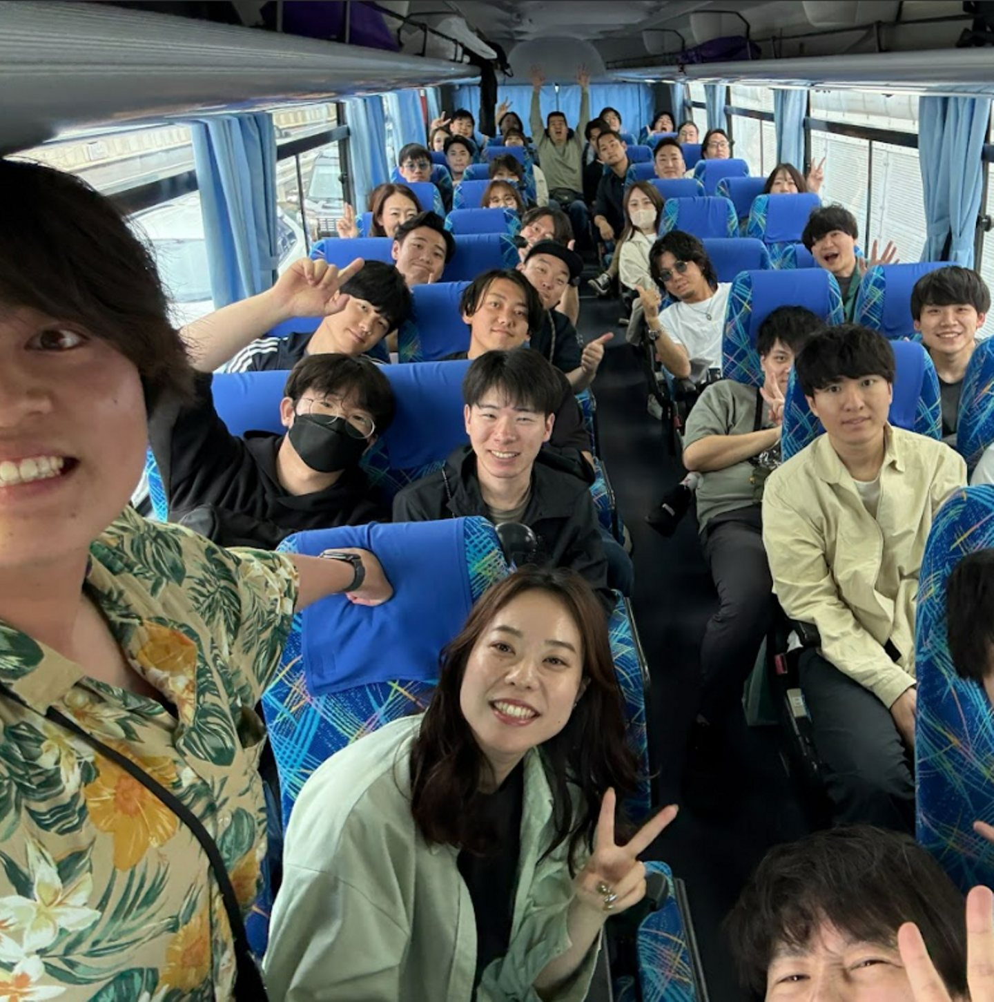 トラべニア(社員旅行委員)メンバーに導かれながら初日の目的地へとバスで移動しました。