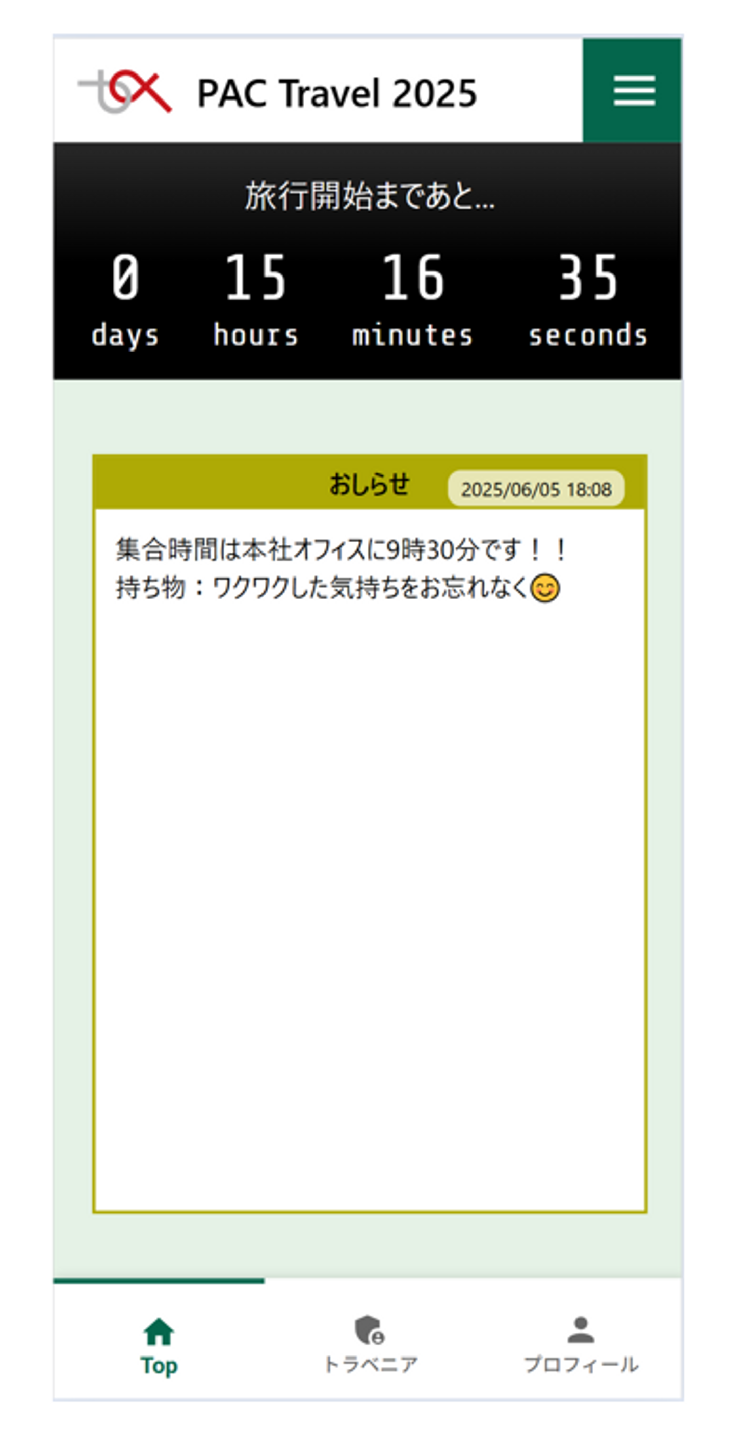 そして、恒例となった社員旅行アプリも公開され、当日にならないとどこに行くかわからないシークレット社員旅行に期待が高まります…!