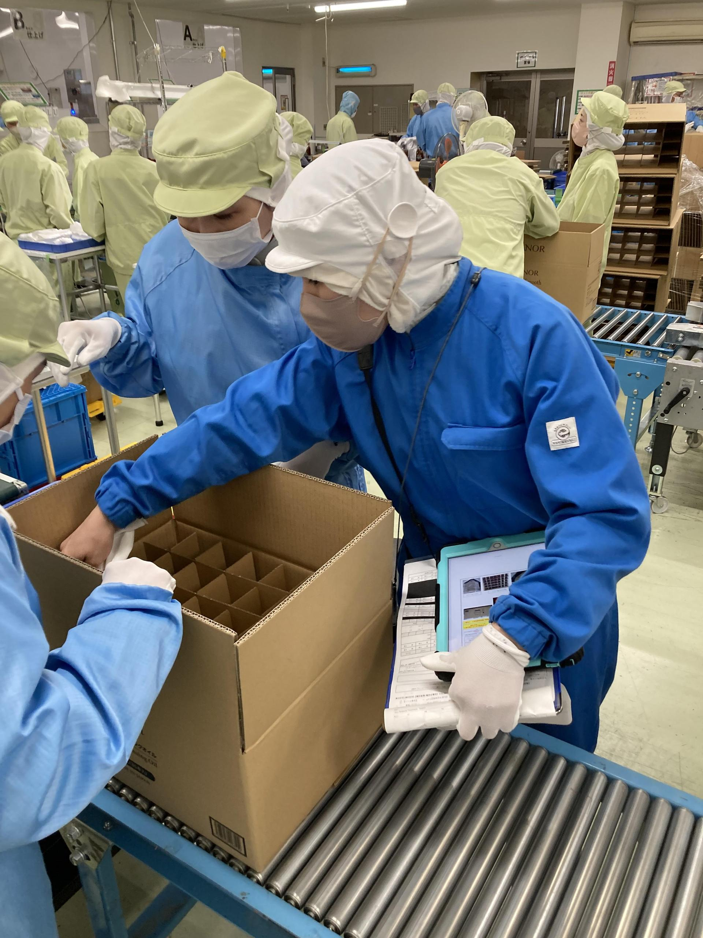 朝一と午後一、毎日ではないですが残業時間にラインの巡視を行います。巡視の合間にサンプル品の検査、出荷準備と登録業務、お客様のやり取りなどの業務をこなしていきます。基本的に生産ラインが稼働しているのは9:00-15:00の間なので機械の洗浄や組み立てが終わった後に翌日の生産ラインの確認や巡視の準備、資材の受け入れ検査を行います。