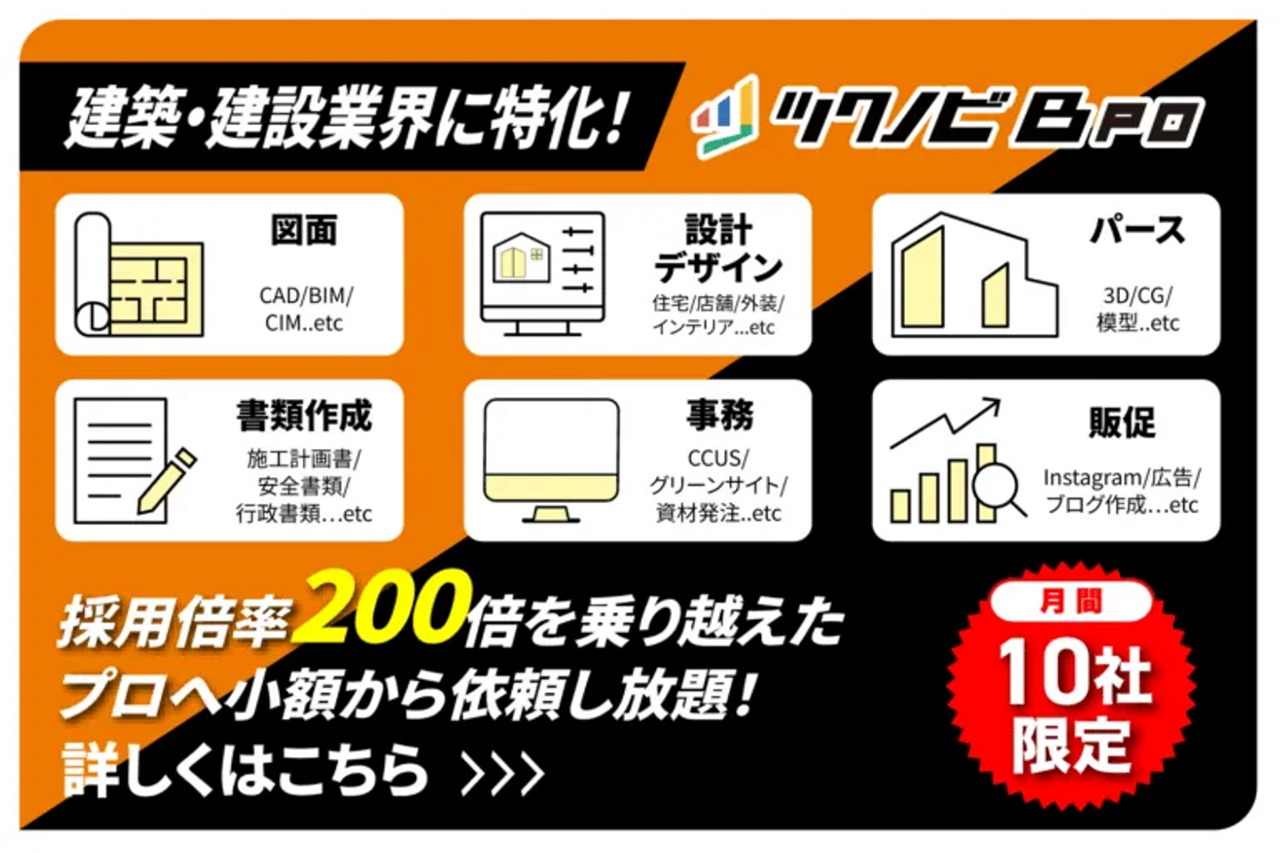建設業界では、人手不足が慢性的な課題になっています。限られた人数の中で、すべてを内製しようとすると、本来やるべき仕事に集中できなくなる。だからこそ、ツクノビBPOがあります。得意なこと、付加価値の高い業務に集中してもらう。それ以外の業務は、私たちが担う。