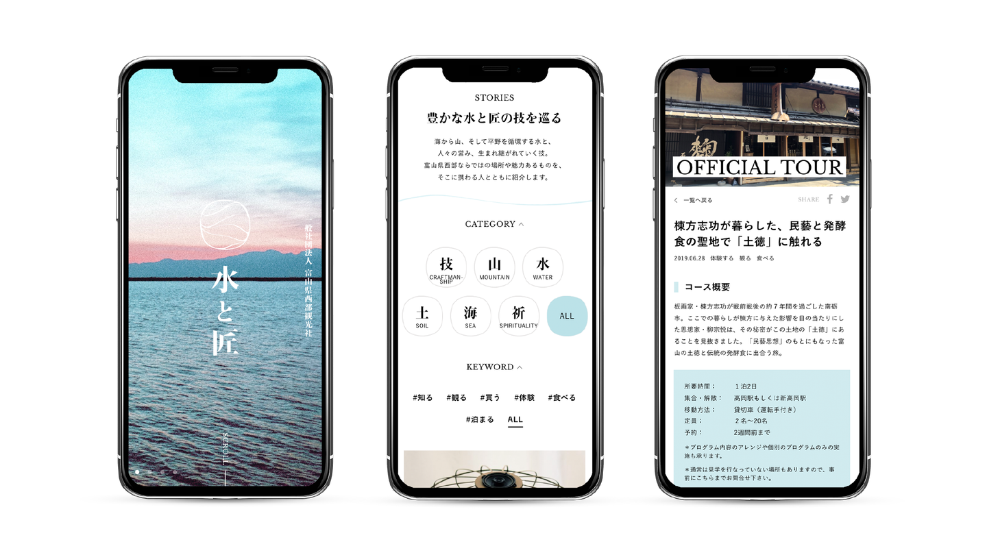 観光を軸にした地域振興の組織「一般社団法人富山県西部観光社 水と匠」の法人立ち上げに際して、ノングリッドがブランディングをサポートしました。