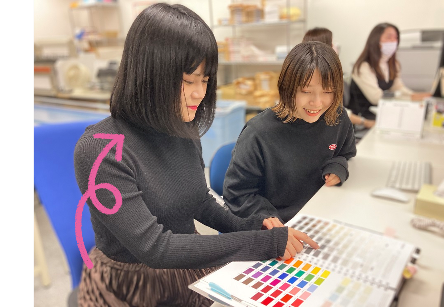 別業種からノンデザイナーとして中途入社した彼女ですが、今やチームの中核を担うディレクターとしてチームメンバーだけでなく店舗からも信頼を得るまでに成長しています。