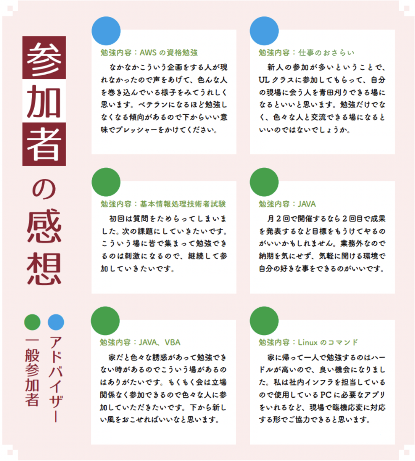 社内のスキルアップの底上げに繋がる良い企画だと感じました!