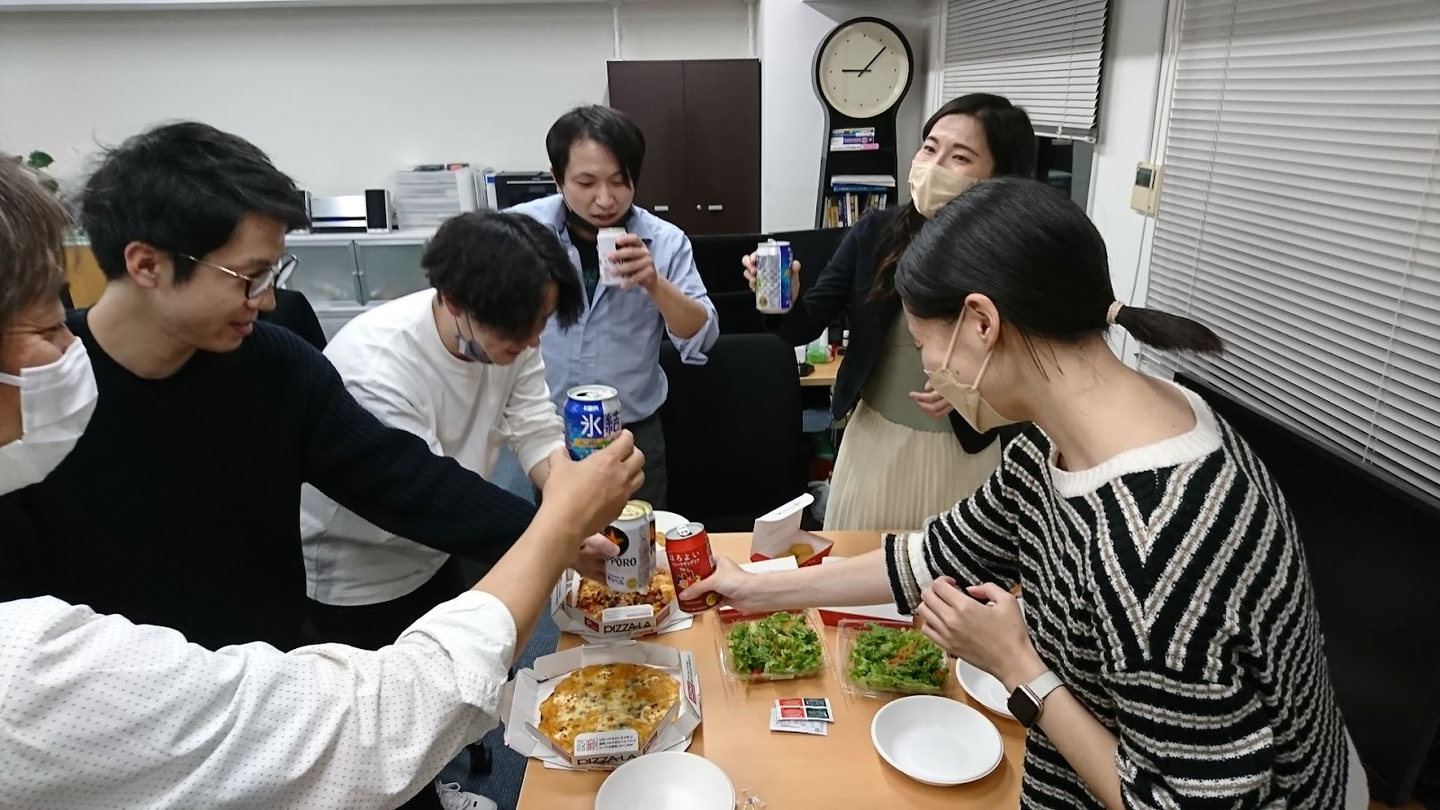 その後、会社にも相談したら了承を得られて「もくもく会」後の懇親会用として、ビールとピザも用意してくださいました!