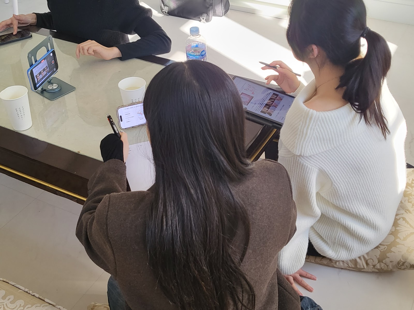 デギュ:以前通訳として働いた経験を活かして、CareCraft独自の社内研修プログラムを用意しました。施術部位や機器・薬品・施術方法の名前などを分かりやすく学べる内容にして、さらに接客マナーや、韓国語だけではなく日本語の丁寧な表現についても指導しています。最近では、月1回の通訳研修会を開いていて、講師の方からの施術研修やロールプレイングなど、日々の通訳に役立つ機会を作っています。