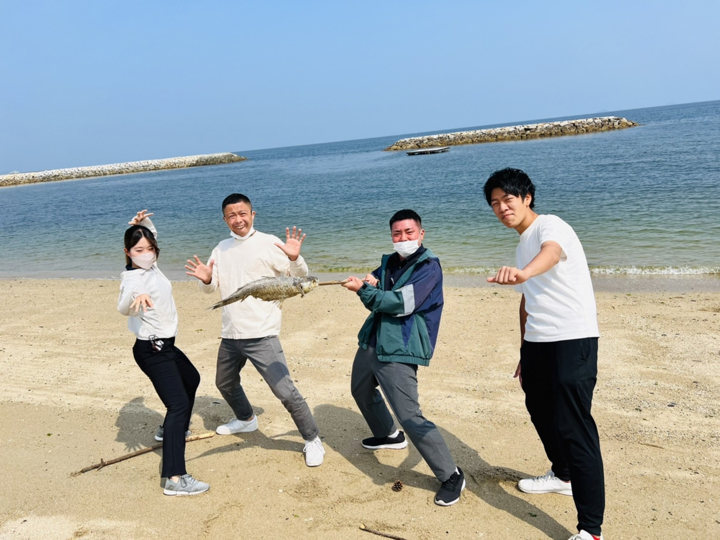 近くに海があるとのことで、毎朝、余木崎海水浴場でミーティングしてから出発するそう!