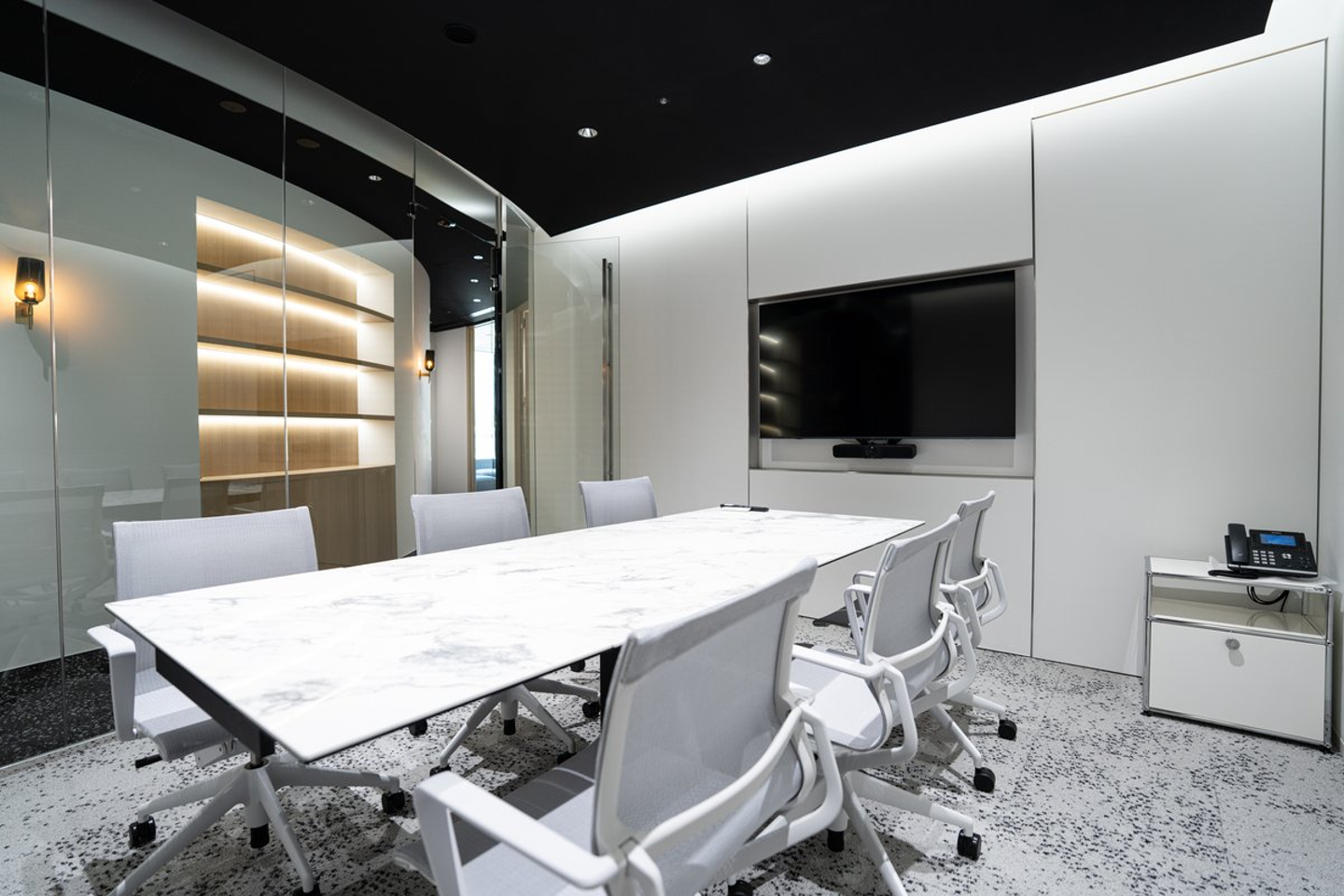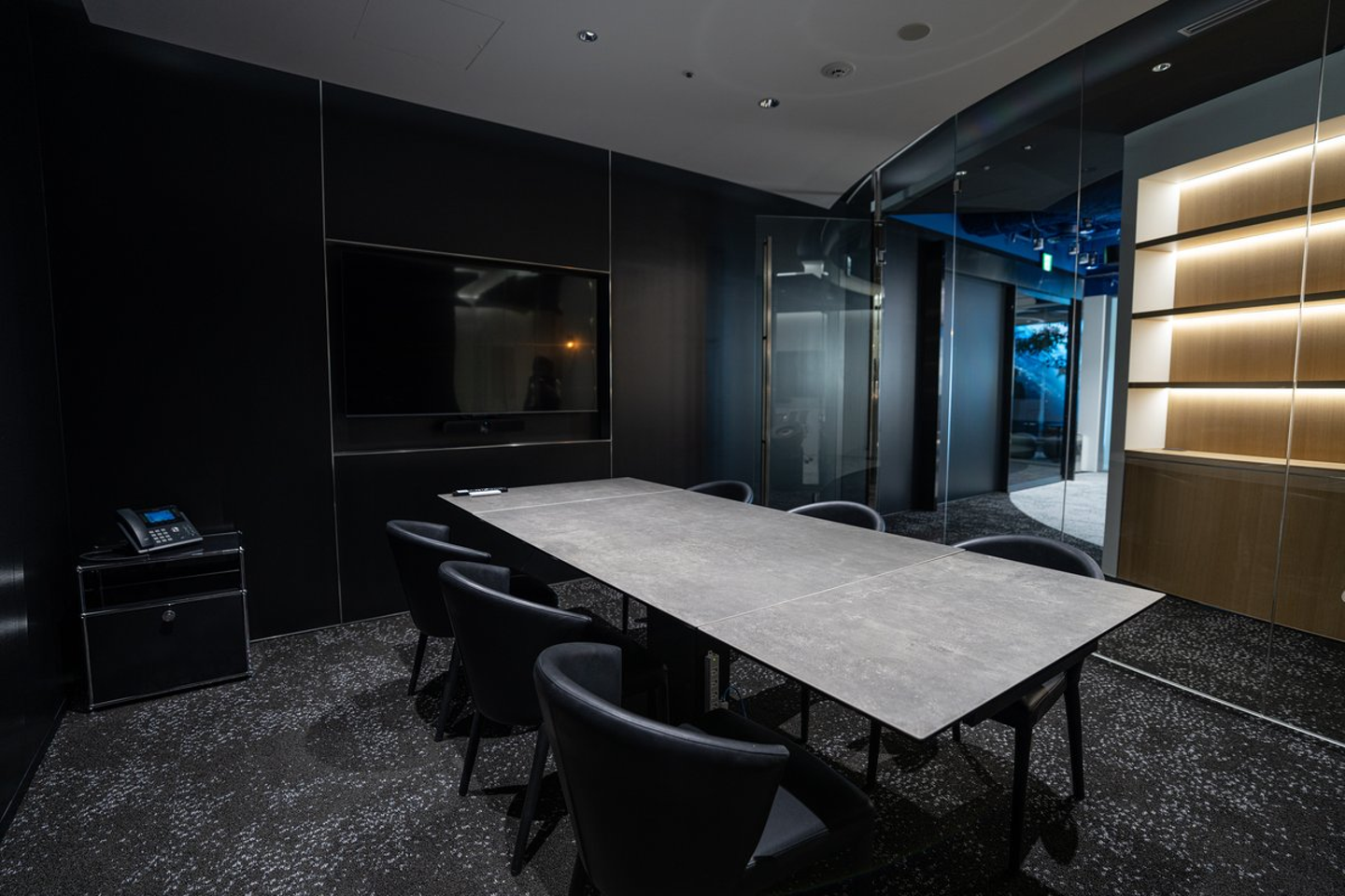 それぞれ対照的なカラーである黒と白を基調とした2つのミーティングルームは、どちらも洗練されたデザインでありながら、集中して話し合える空間となっています。