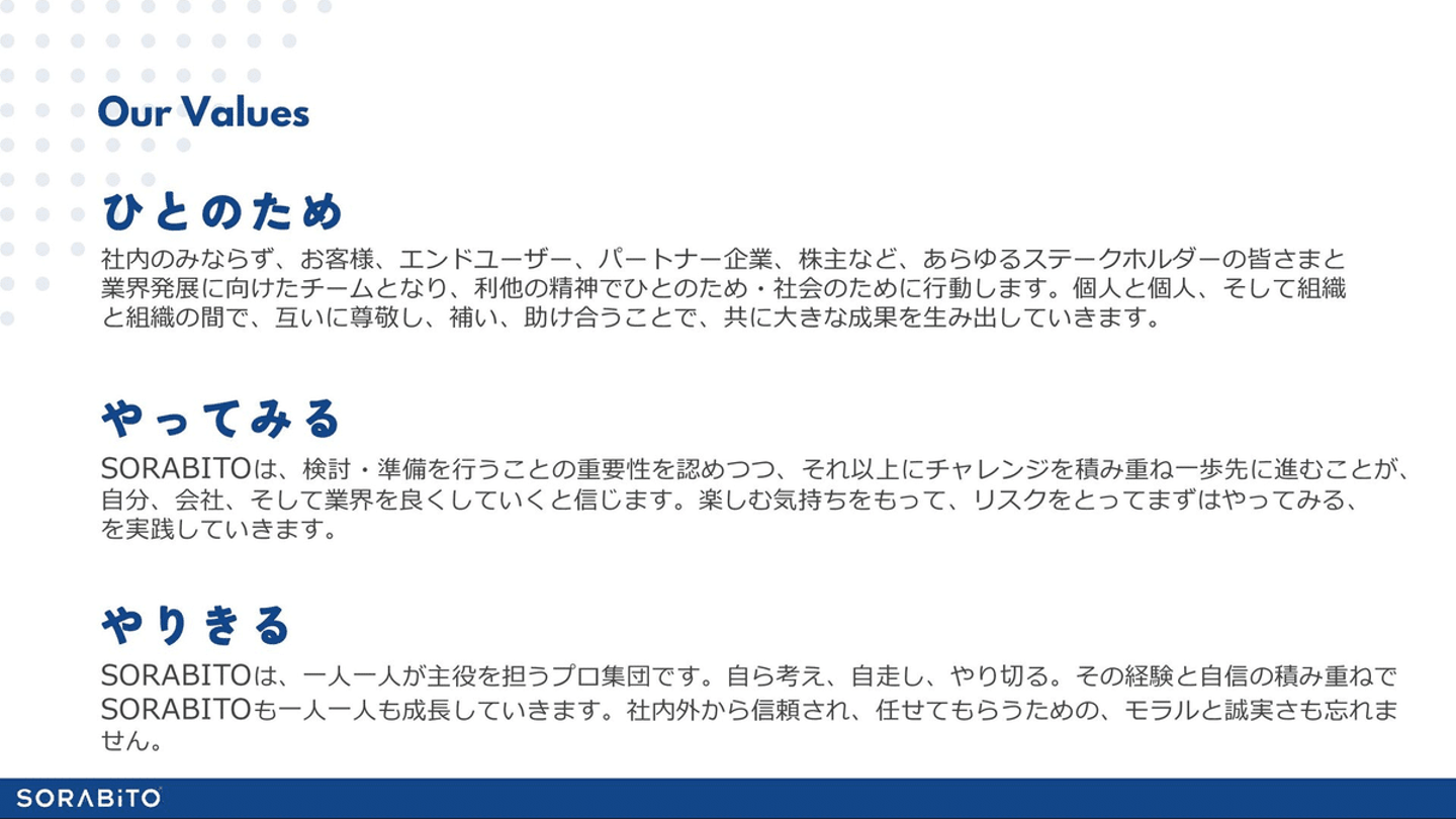 当社のValue(ひとのために、やってみる、やりきる)にマッチしていて、