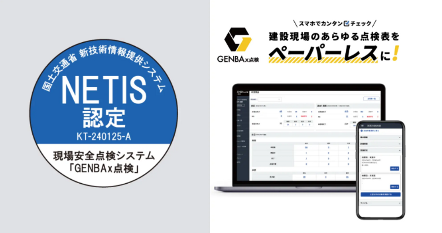 そして、ローンチから約5ヶ月後の10月には、GENBAx点検が国土交通省の新技術情報提供システム「NETIS」(ネティス)に登録されました!👏