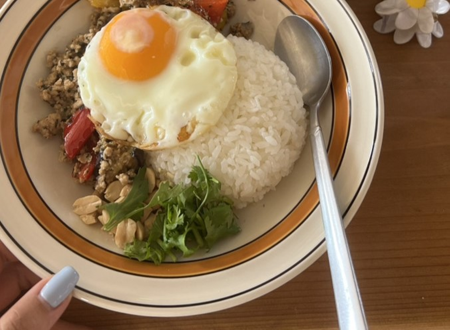 この写真はそのとき食べたガパオライス🥗🥄海から帰るときに見た空が美しく、印象的だったようです。だいぶ遊び倒したようで、かなり日焼けしていました😂
