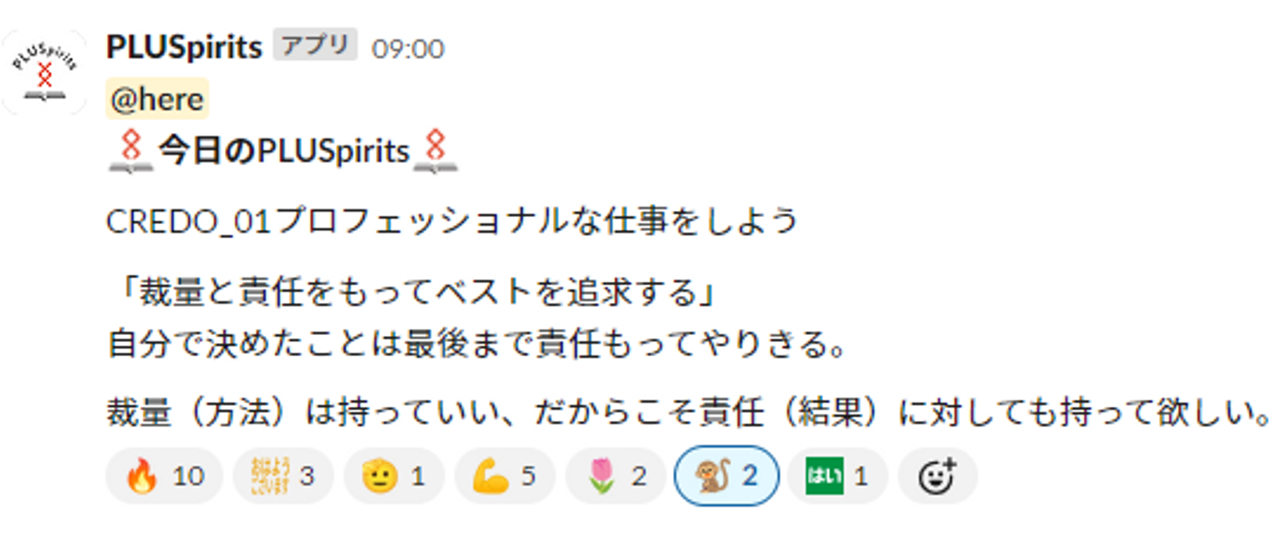 Credoを示した言葉がランダムに、毎朝9時にチャットツール上で配信されています。