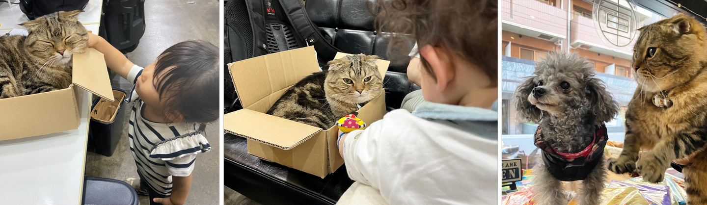 のぶにゃががAAB/庫-kho-にきっかけは、弊社スタッフの中野さんが、お休みの日にたまたま息子さんと一緒に訪れたペットショップでのぶにゃがを見つけたことでした。その場で抱っこさせてもらった中野さんと息子さんはますますメロメロに。。。