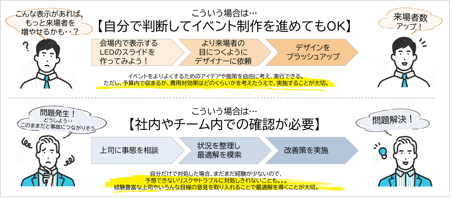逆に、「どんな時であれば自分で判断をして進めて問題ないのか」