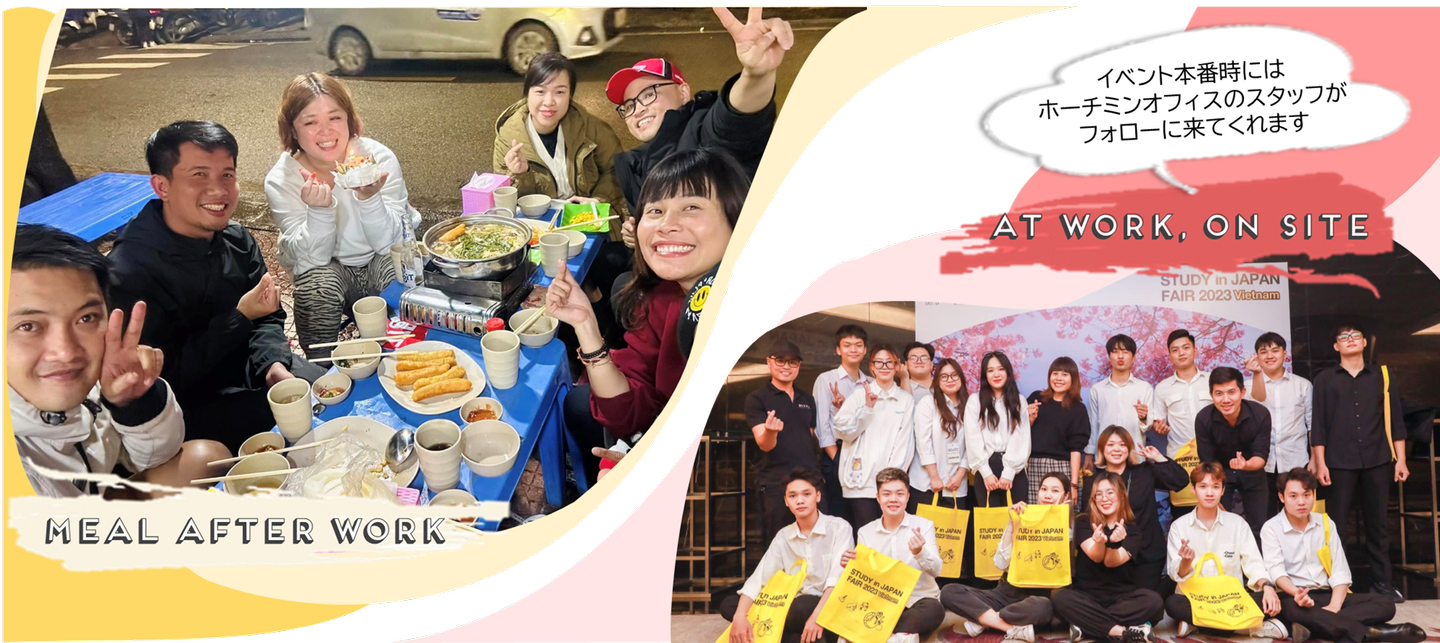 ベトナムで開催される「日本」に関連したイベントの企画・制作業務を担当しています。在ベトナム日系企業様の周年記念式典や、日越関連式典、日本産品プロモーション、フェスティバル運営、展示会出展サポート、セミナーなど、クライアントのご担当者が日本人になるものを主に担当しています。