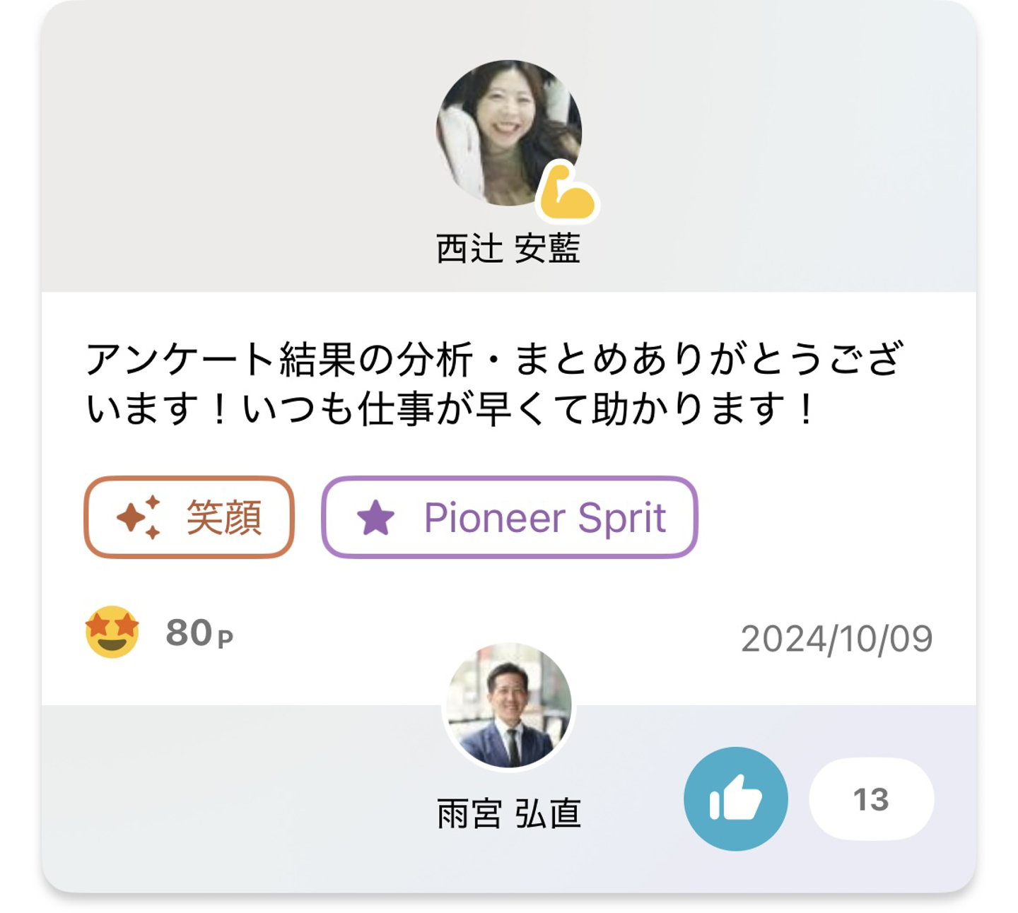 →お互いの成果や協力を認め合う&ありがとうが飛び交う環境に