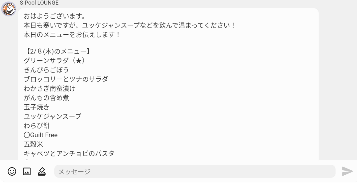 メニューは日替わり!ラウンジに行くのが楽しみになりますね!メニューはいつでもラウンジのコミュニティで確認できます!