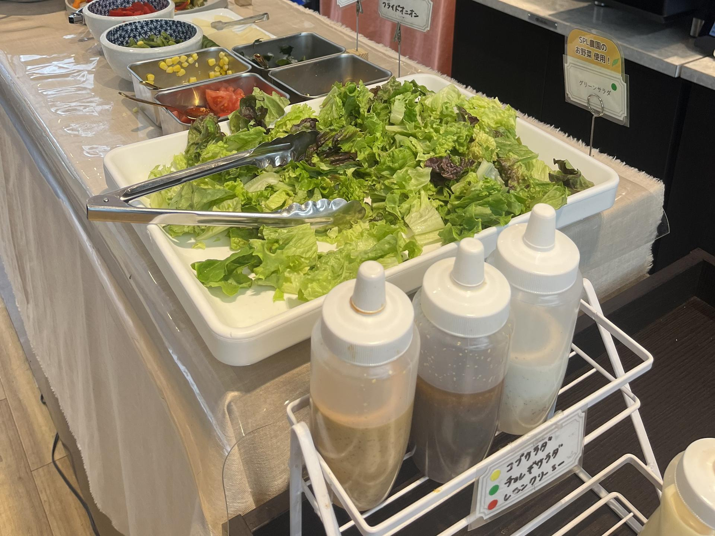 ビュッフェの一番最初にあるのがサラダコーナー。サラダは毎日用意されていて、ドレッシングやトッピングも豊富!毎日飽きずにヘルシーなサラダを楽しめちゃいます!