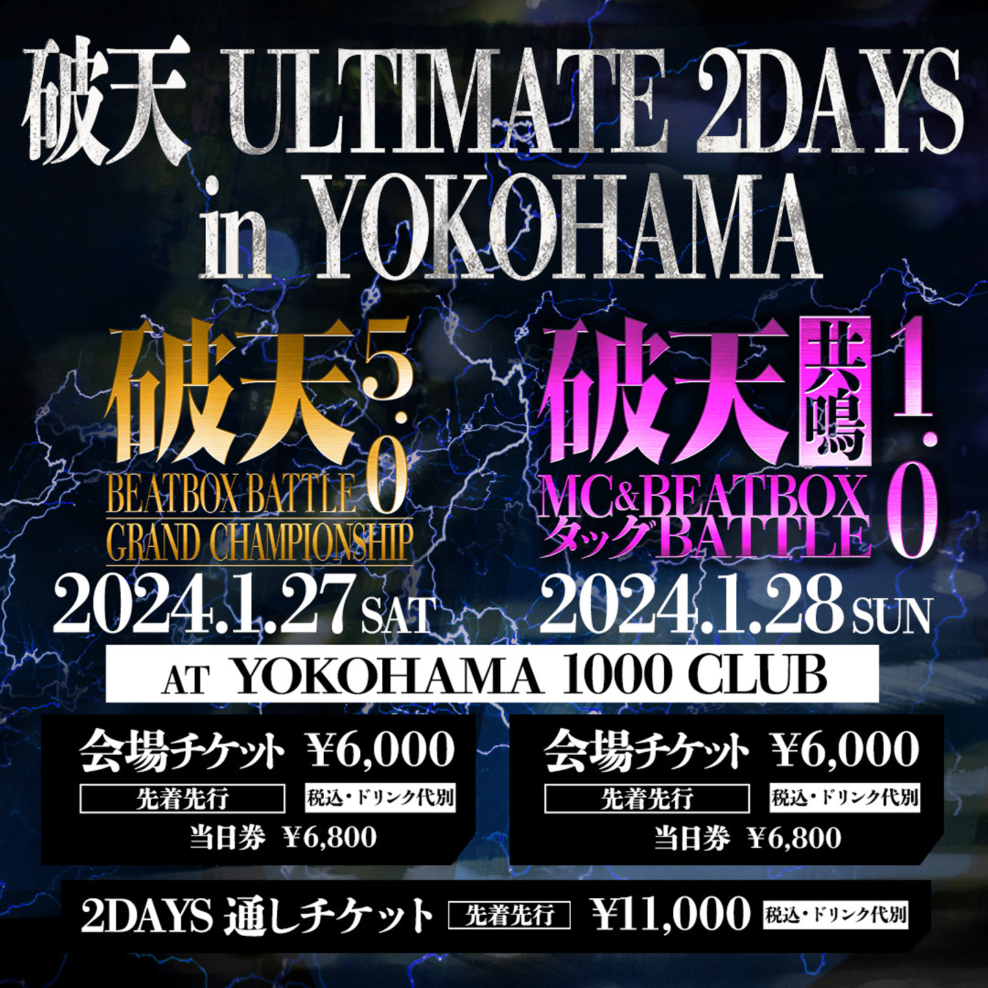 【破天 ULTIMATE 2DAYS in YOKOHAMA】1/27〜1/28にBEATBOXBATTLEイベント連日開催決定!イープラスにて本日18時より先行先着チケット発売!
