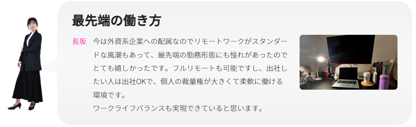 ◆配属先選択・働き方の自由度はありましたか?それについてはどう思いますか?