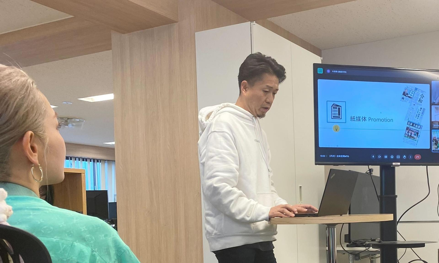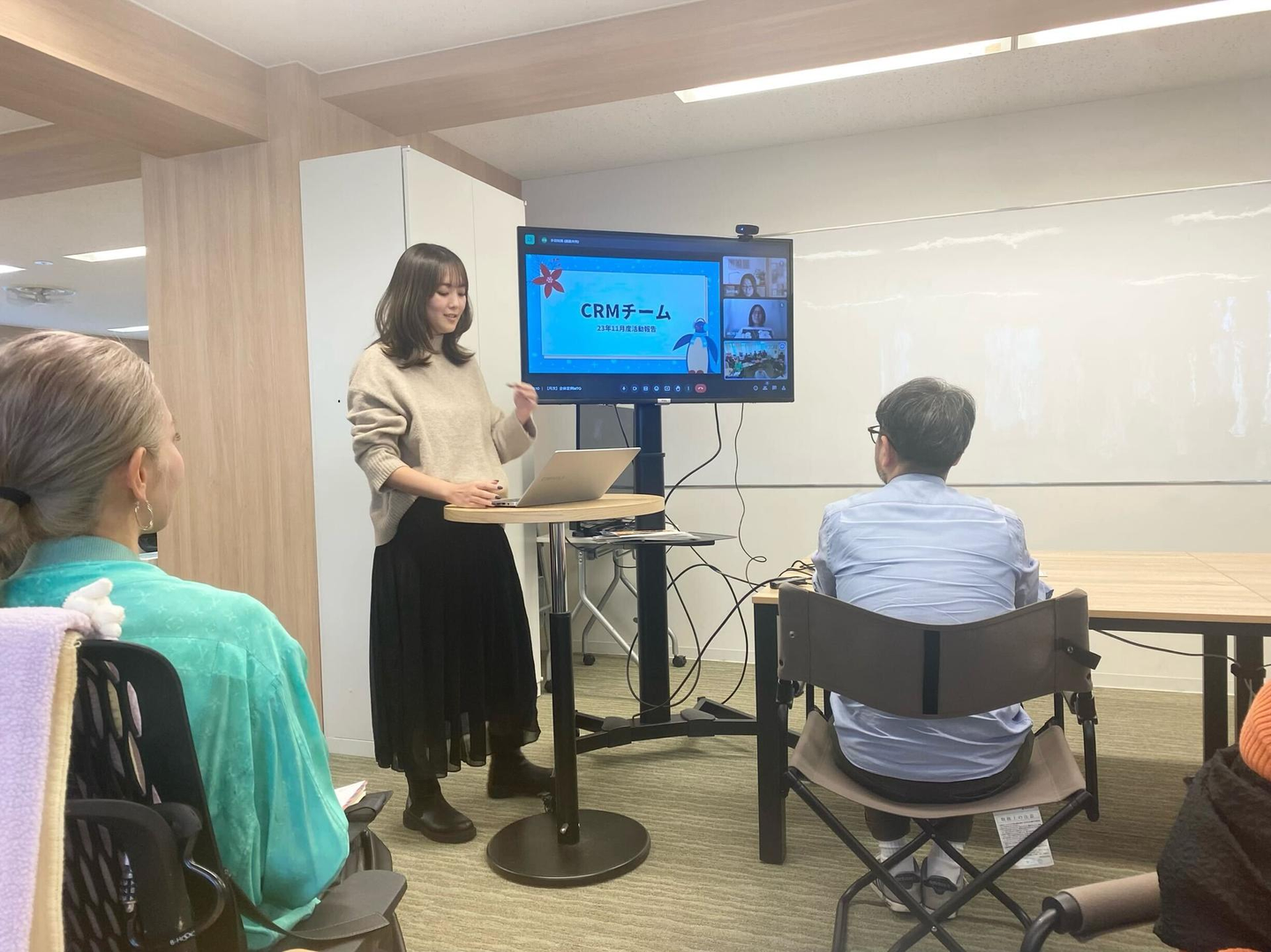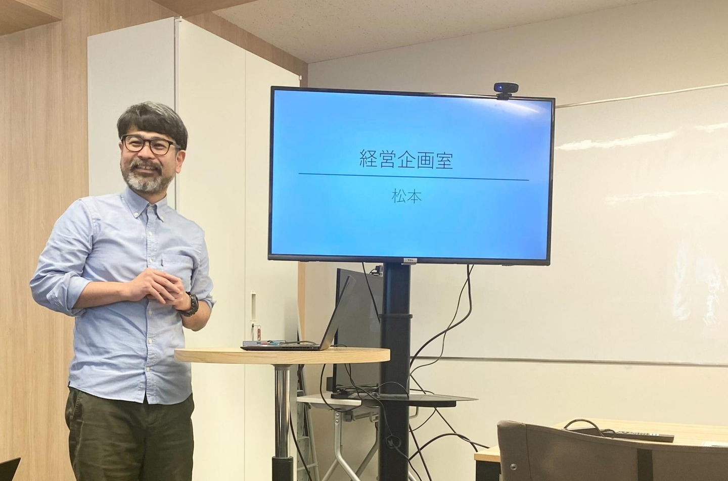 毎月、各部署の発表者が1名5分程度で自分の部署の話をします。直近の業務内容を共有したり、今期に力を入れていることを発表したり、そもそも自分がどんな仕事をしているのか説明したり、内容は発表者によってさまざま。