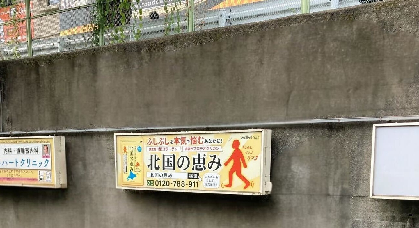こちらはJR巣鴨駅に設置された「北国の恵み」の看板広告です。巣鴨駅を利用される際はぜひチェックしてみてください!