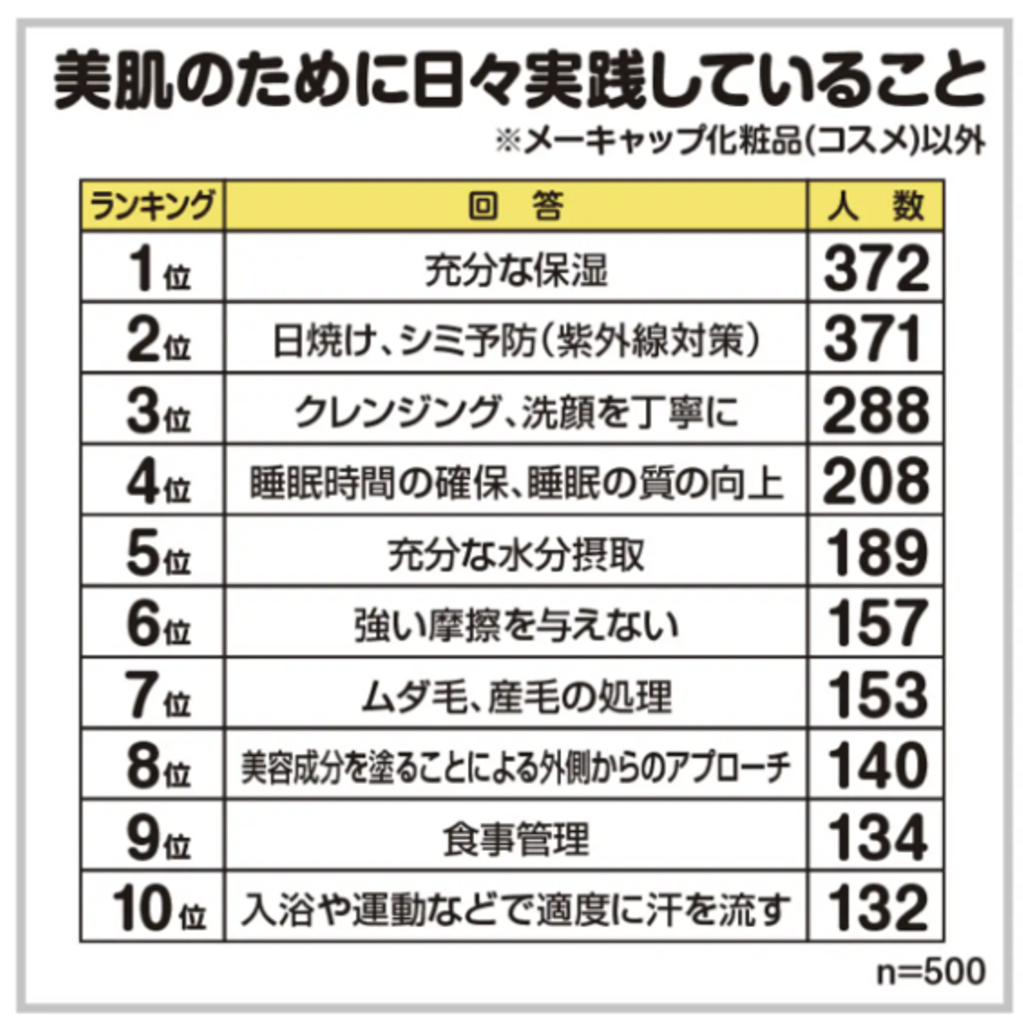 「美容のために日々実践していること」として睡眠の質向上が上位にランクインしています。