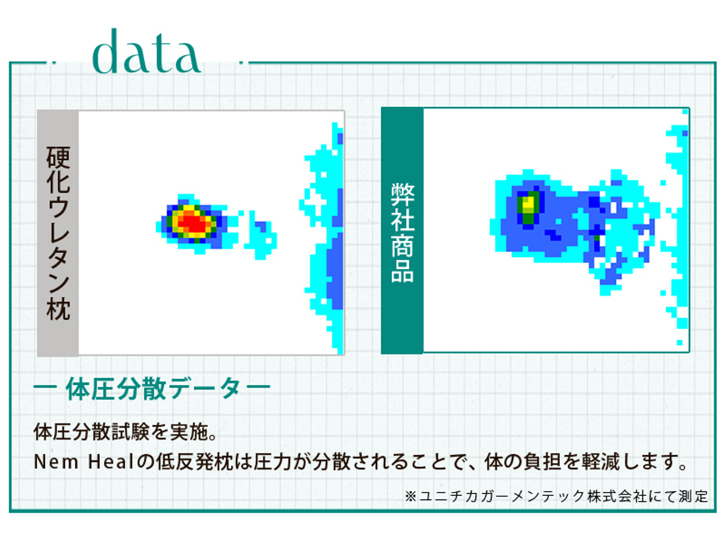 さらに、ウレタン発砲時に抗菌防臭加工を施し、ニオイ対策も万全。また、底面には滑り止め加工を施し、就寝時の枕のズレを防止できるように設計しました。