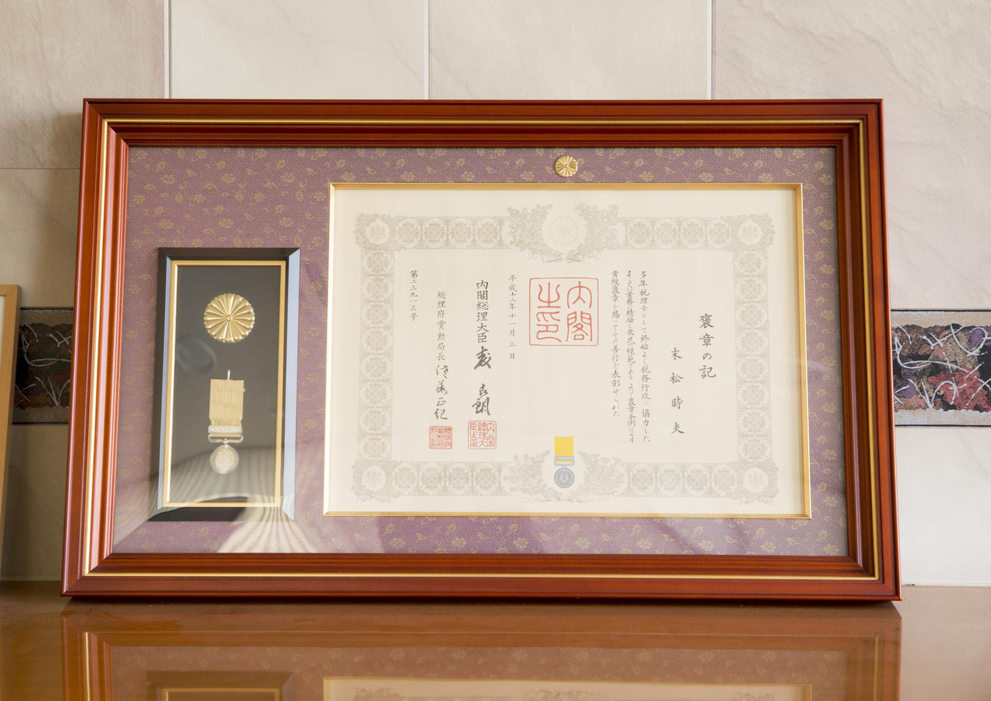 時夫先生は、平成12年に内閣府 黄綬褒章を受章されています。