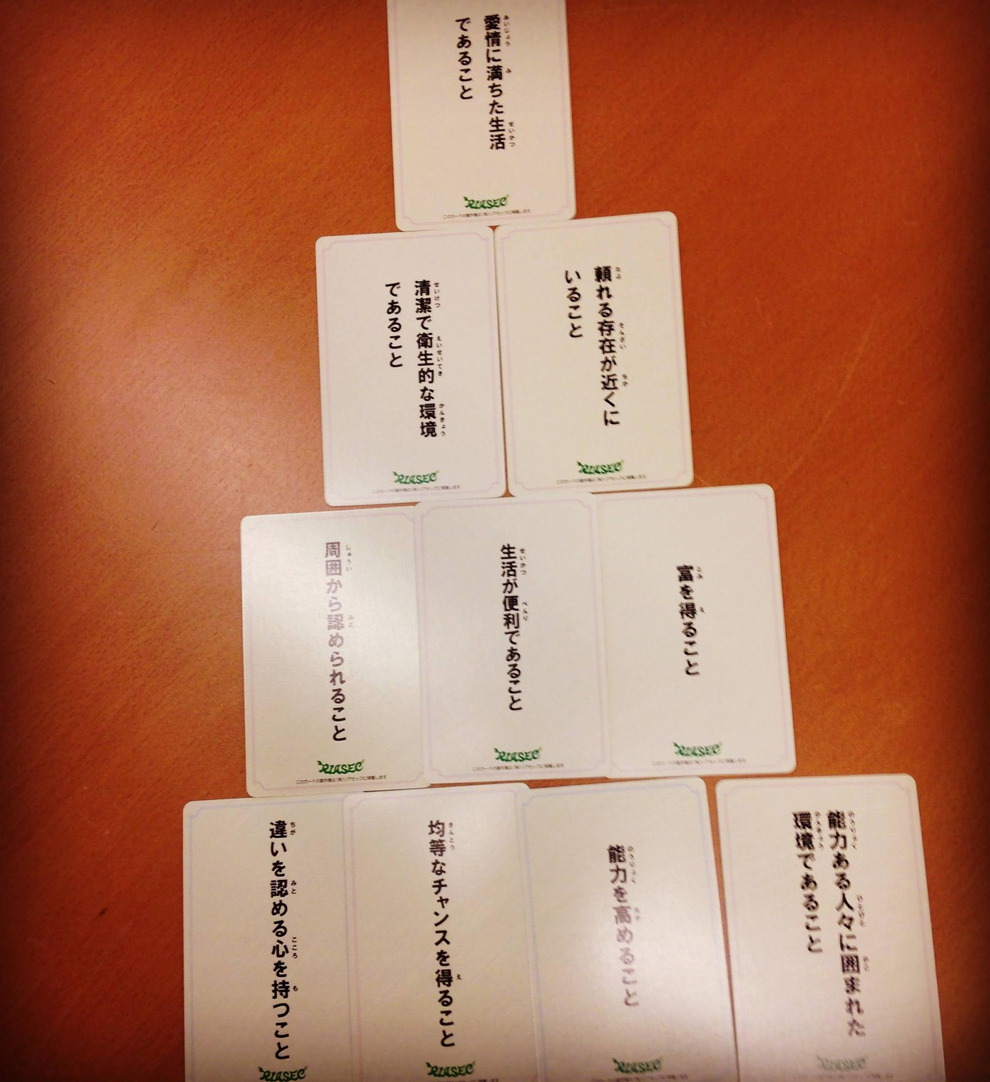 人生における価値観がわかるカード を使用した私の結果です。