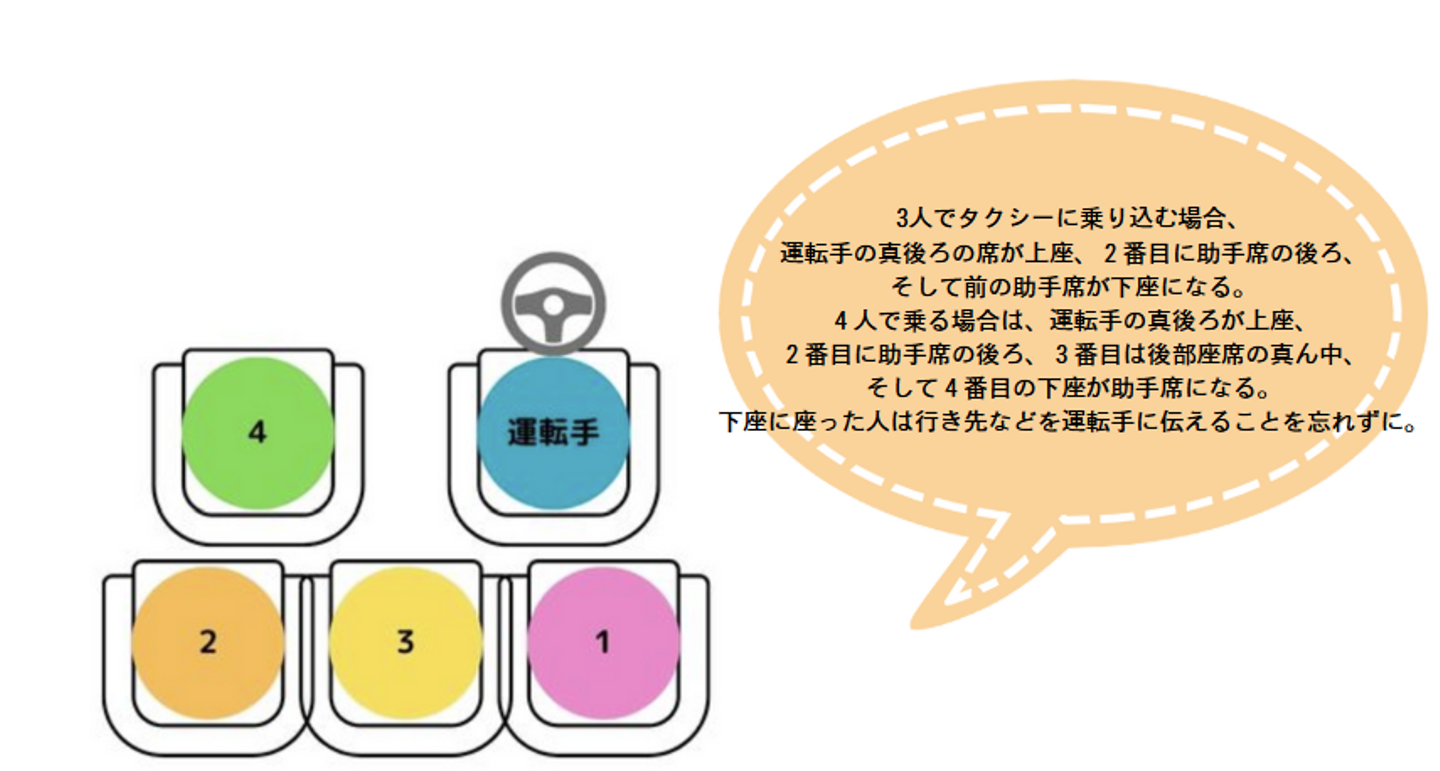 お客さまをもてなす立場の人が座る席をいい、入り口やドアに一番近い場所に位置する