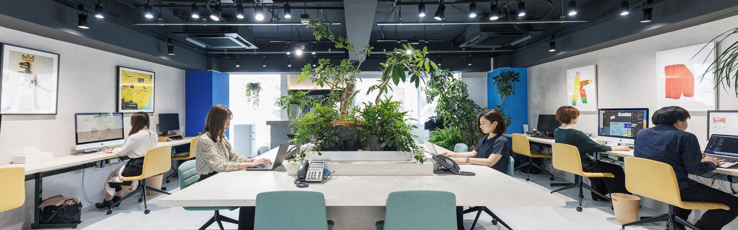 新しく増床された5階も、4階と同様に仕切りのドアがなく、美術館のようにアートがたくさん飾られています!カフェのような音楽と、素敵な空間でお仕事をしてみませんか?