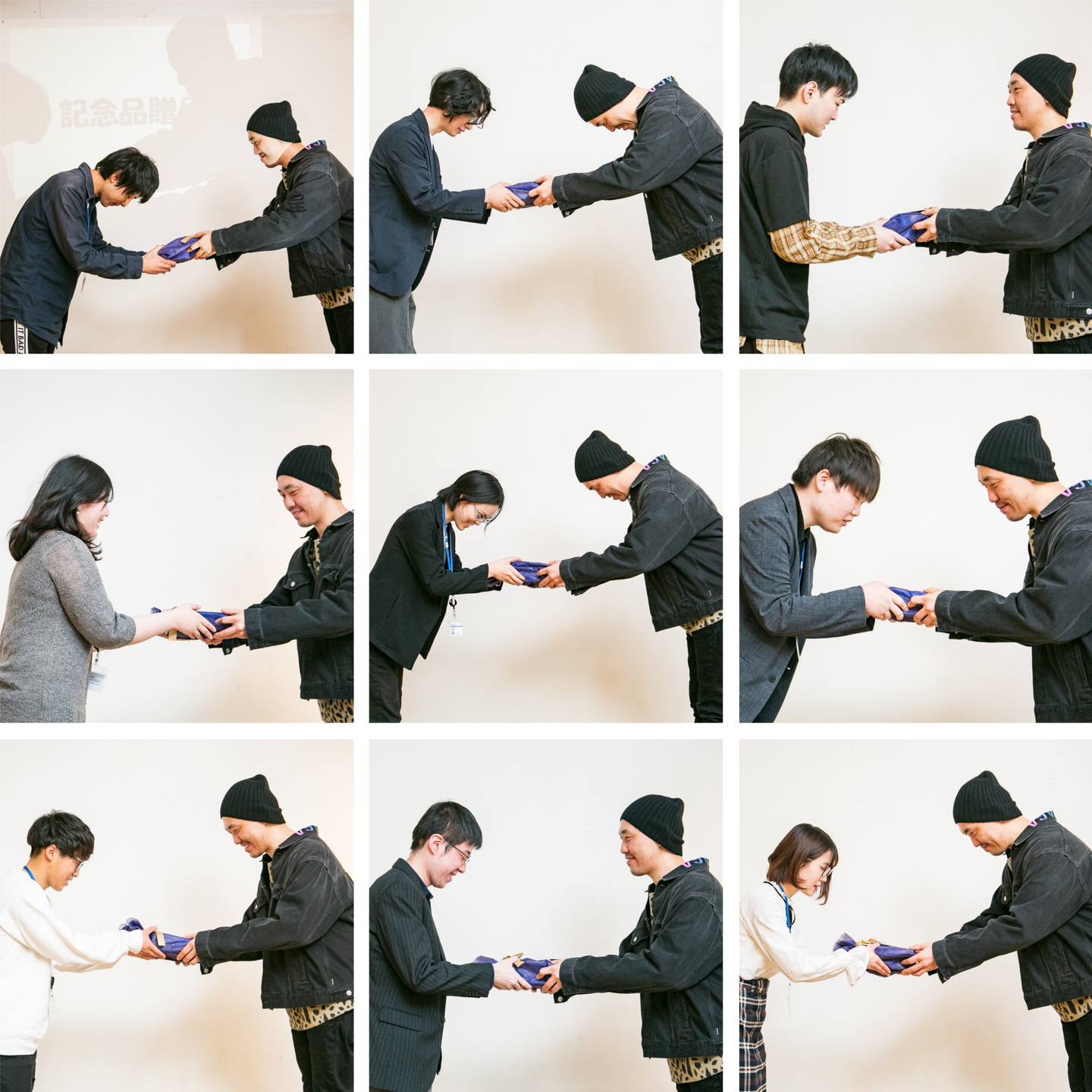 ご挨拶が終わったあとは、葛川さんより新入社員に記念品を贈呈!