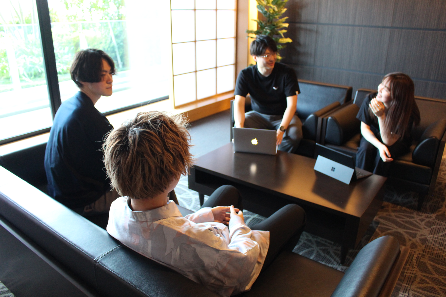 【ミーティング中の弊社メンバー。年齢は関係なく、フラットに意見を交わせる環境です。】
