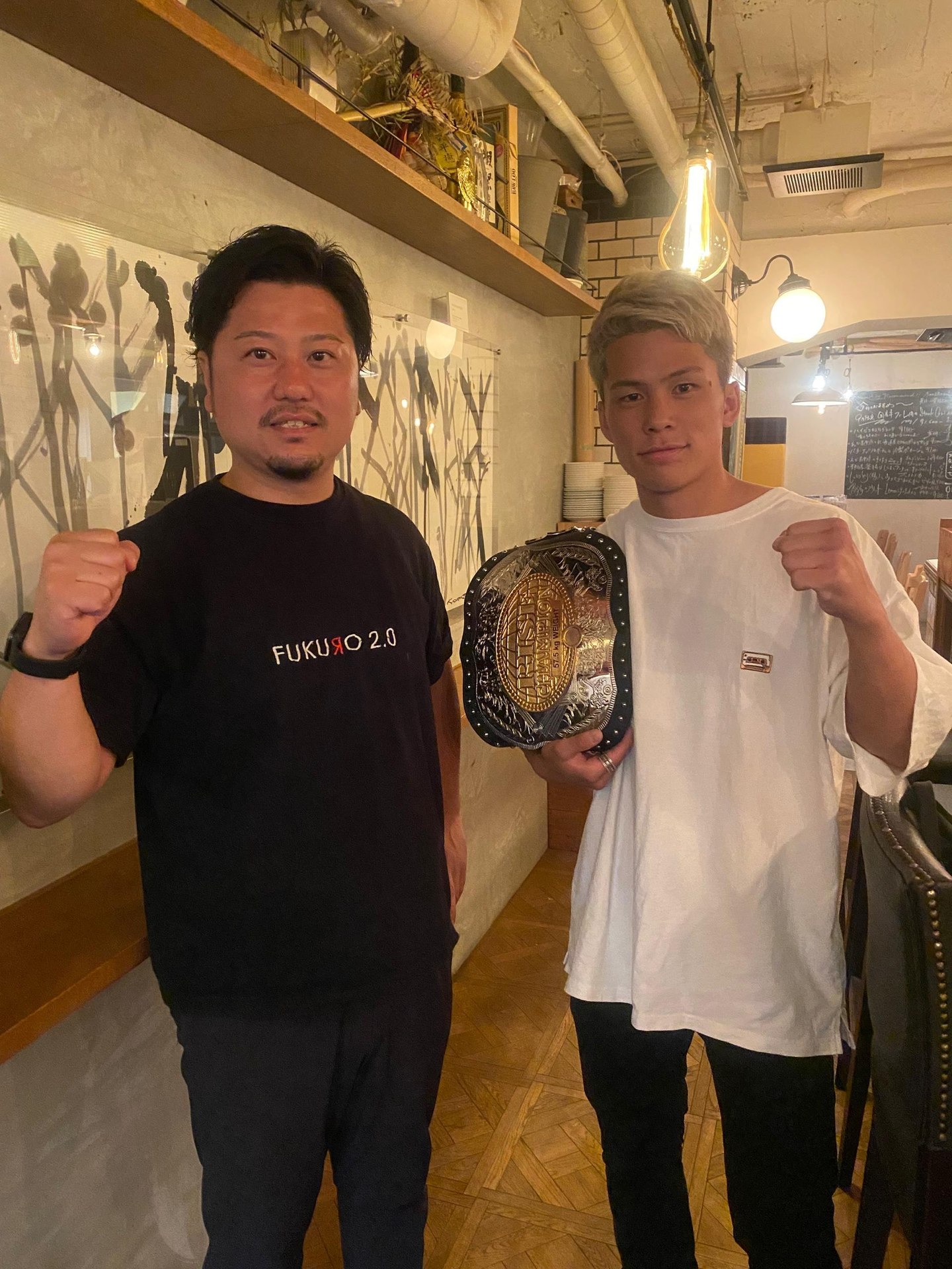 門口佳佑選手がチャンピオンベルトを持って大阪へ帰ってきてくれました🥊🔥