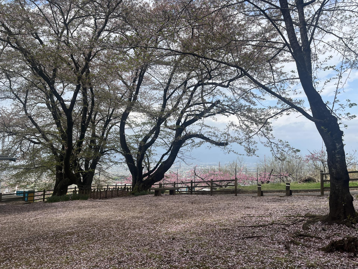 作業の休憩中には、桜と桃の花がきれいに見える場所に連れて行ってもらいました。